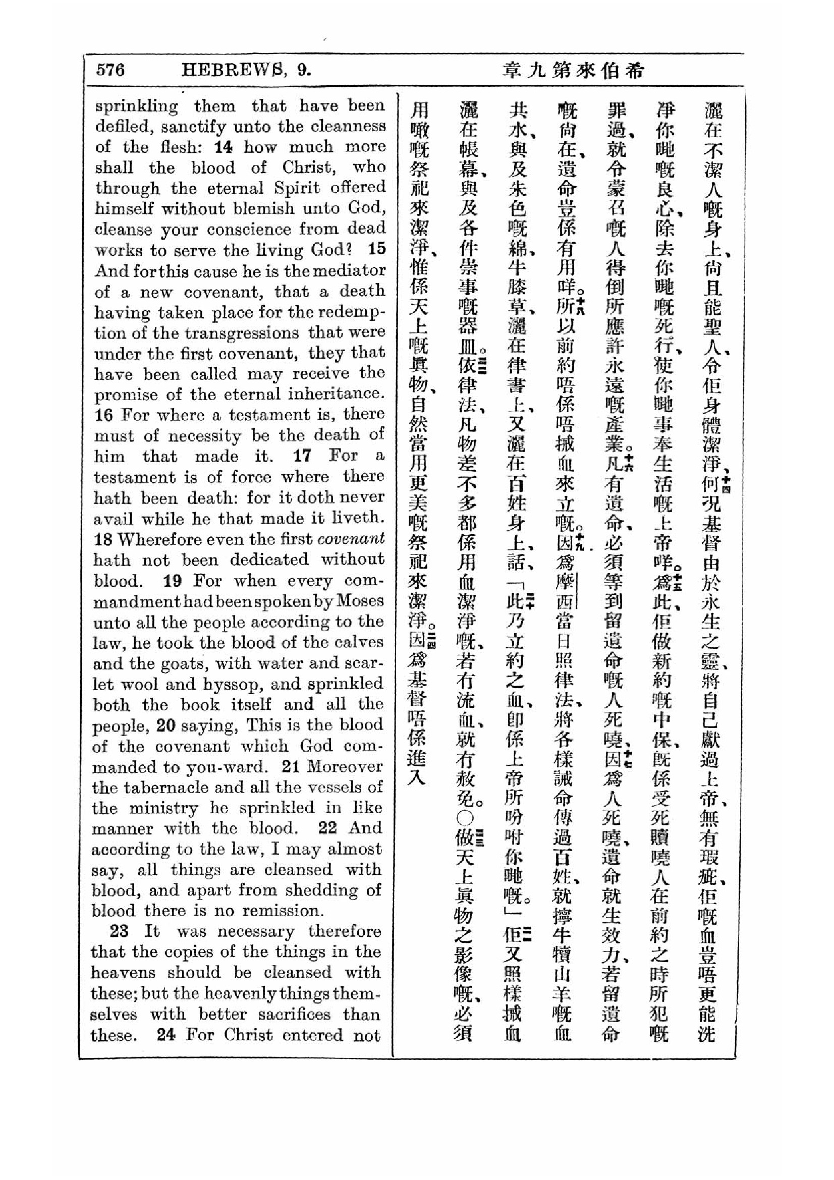 1927年新约全书(中英对照) 希伯来书 9 章 14 节到 9 章 23 节