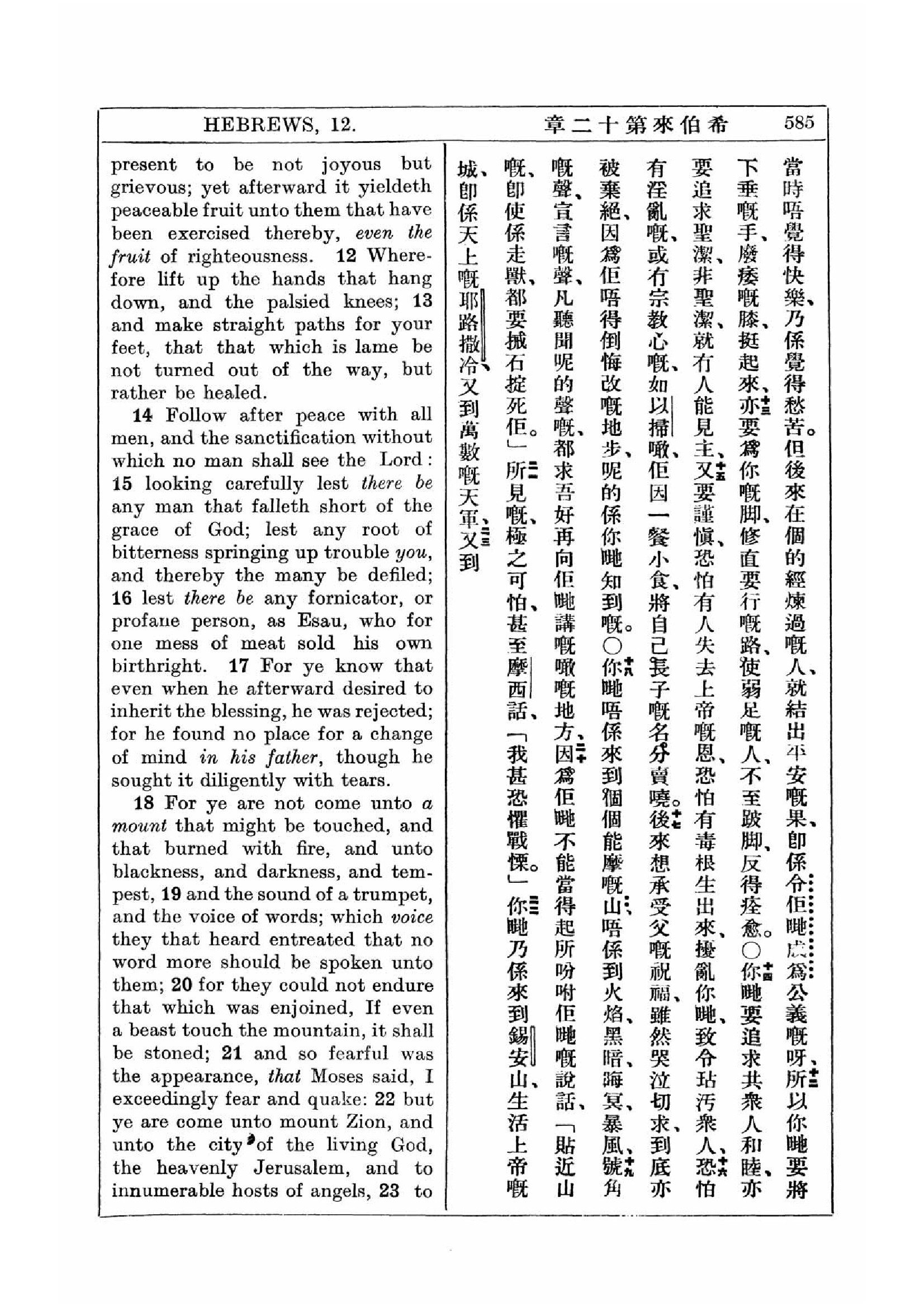 1927年新约全书(中英对照) 希伯来书 12 章 11 节到 12 章 22 节