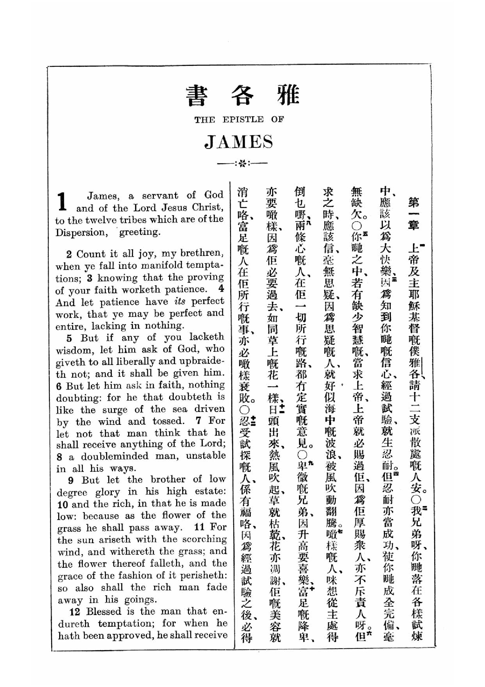 1927年新约全书(中英对照) 雅各书 1 章 1 节到 1 章 12 节
