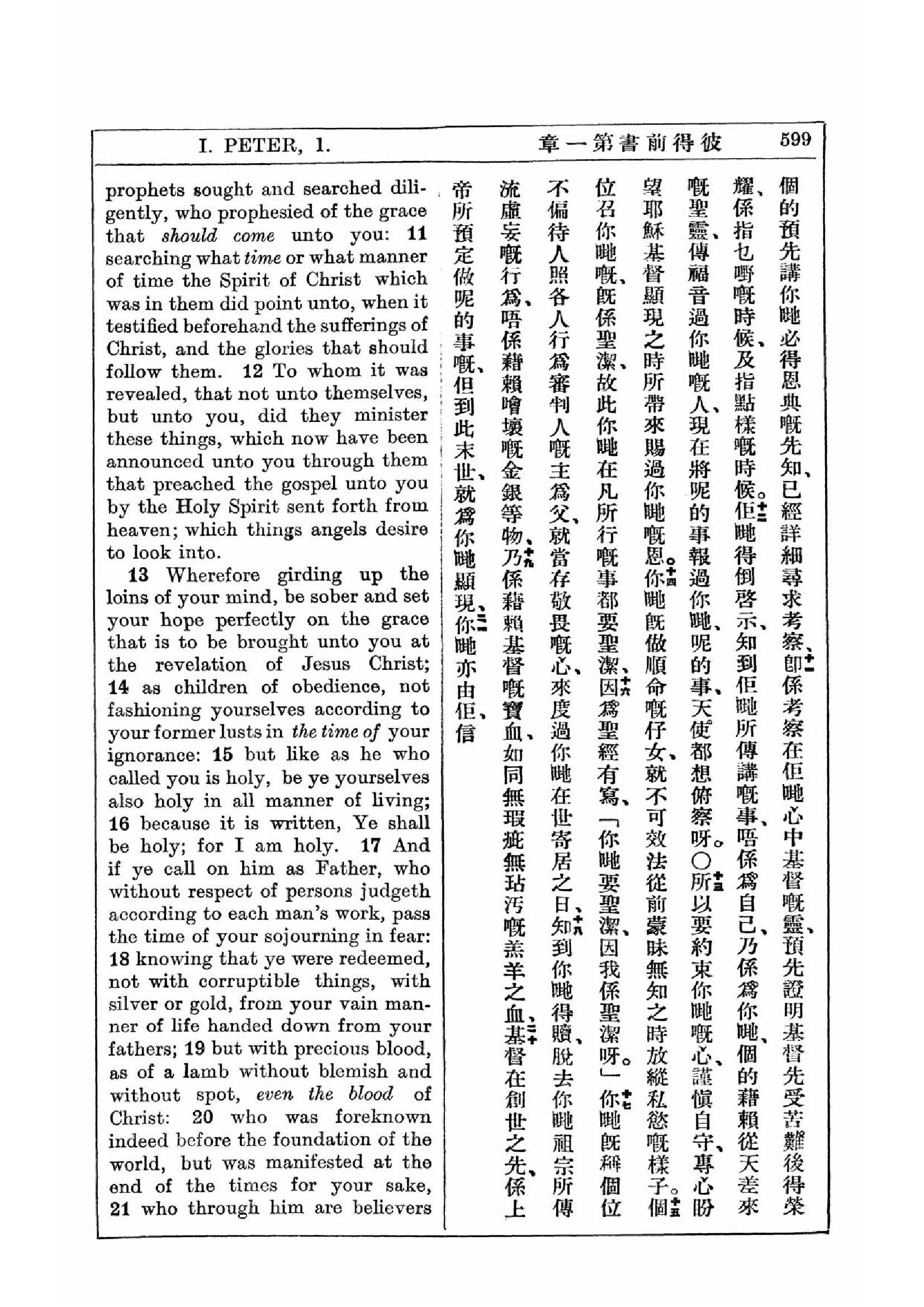 1927年新约全书(中英对照) 彼得前书 1 章 11 节到 1 章 21 节