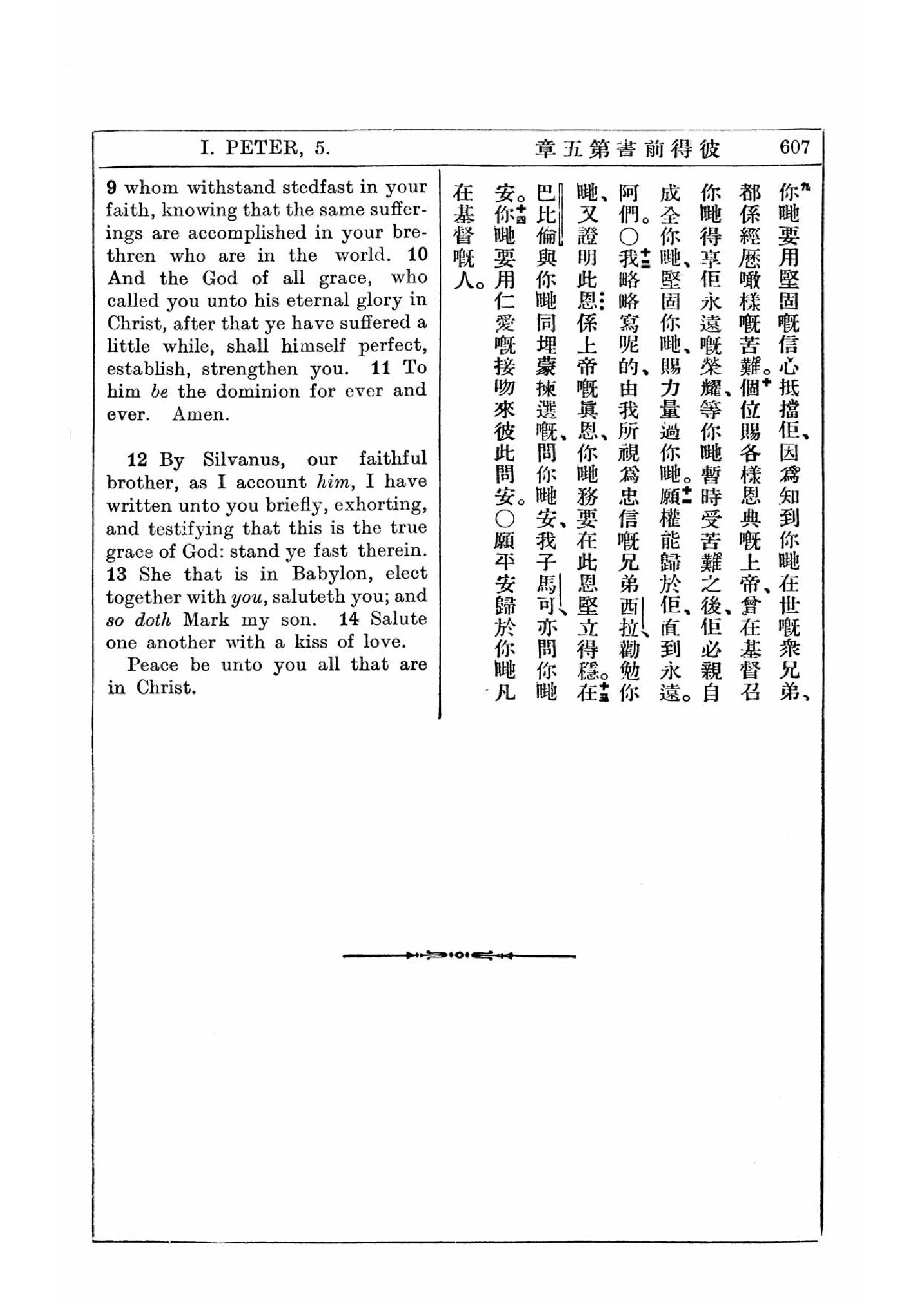 1927年新约全书(中英对照) 彼得前书 5 章 9 节到 5 章 14 节