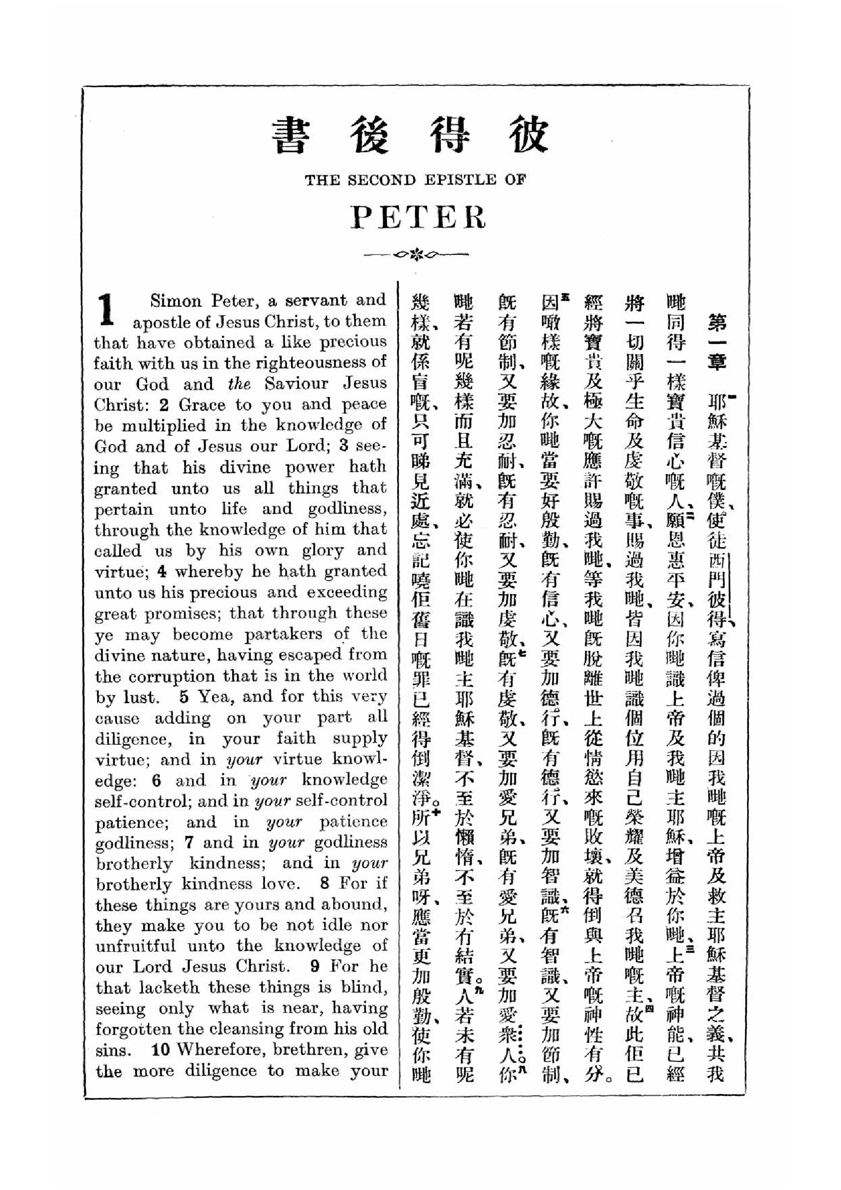 1927年新约全书(中英对照) 彼得后书 1 章 1 节到 1 章 10 节