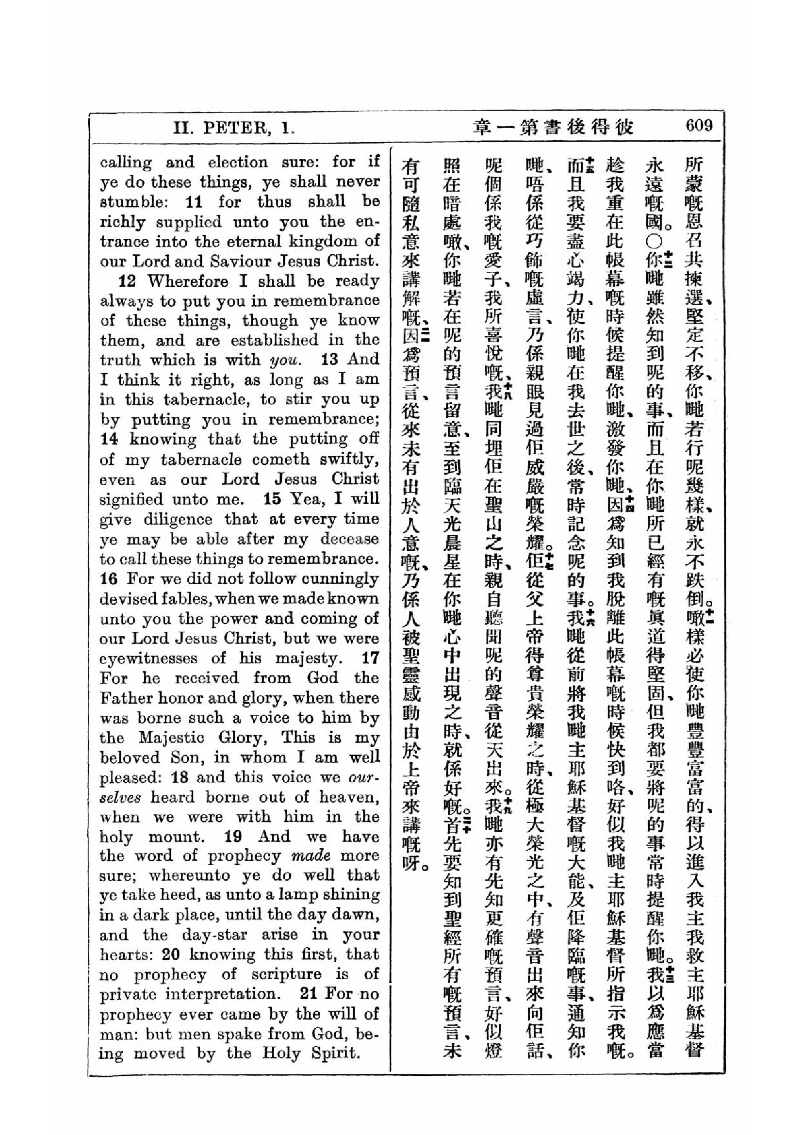 1927年新约全书(中英对照) 彼得后书 1 章 11 节到 1 章 21 节