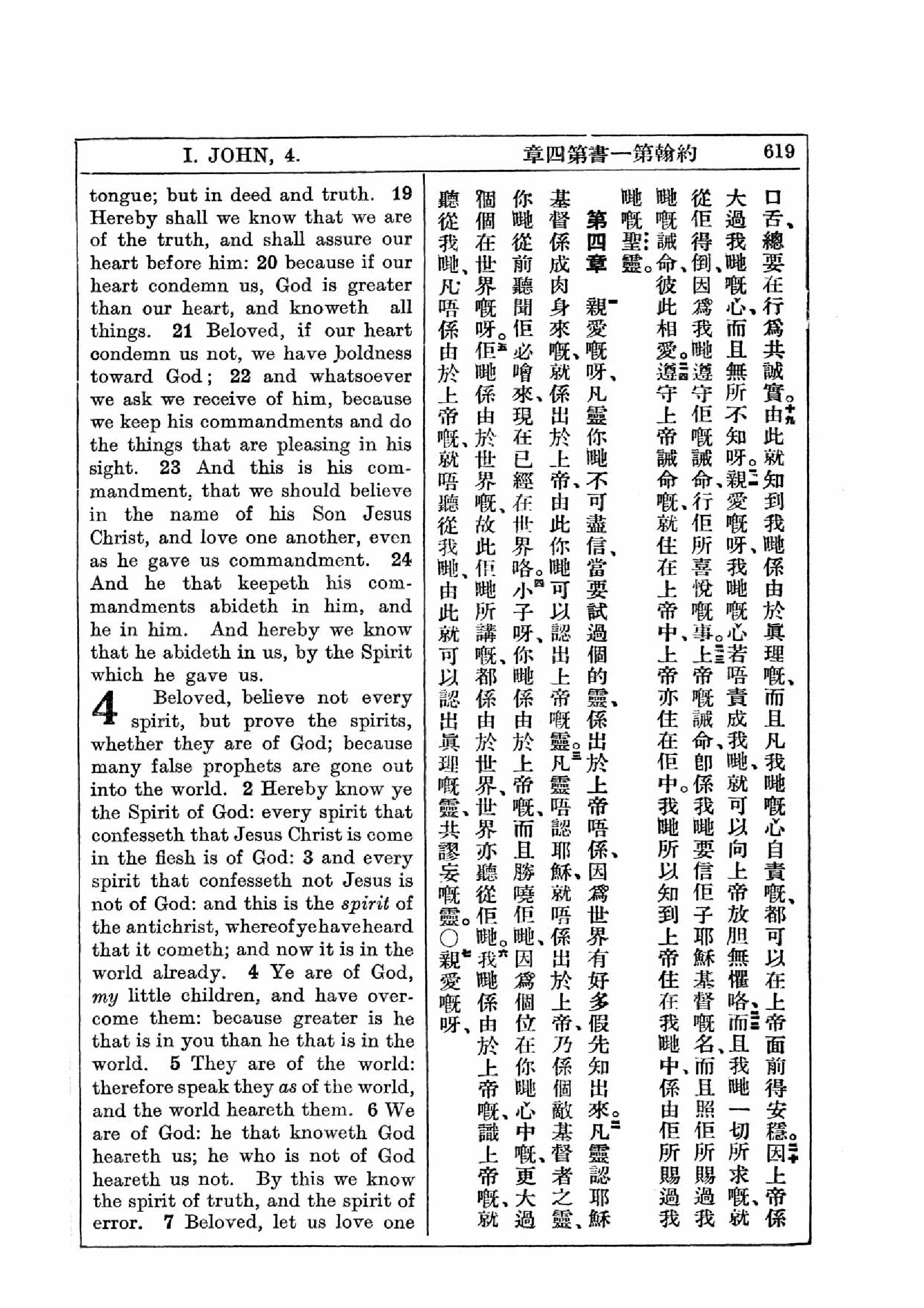1927年新约全书(中英对照) 约翰一书 3 章 19 节到 4 章 6 节