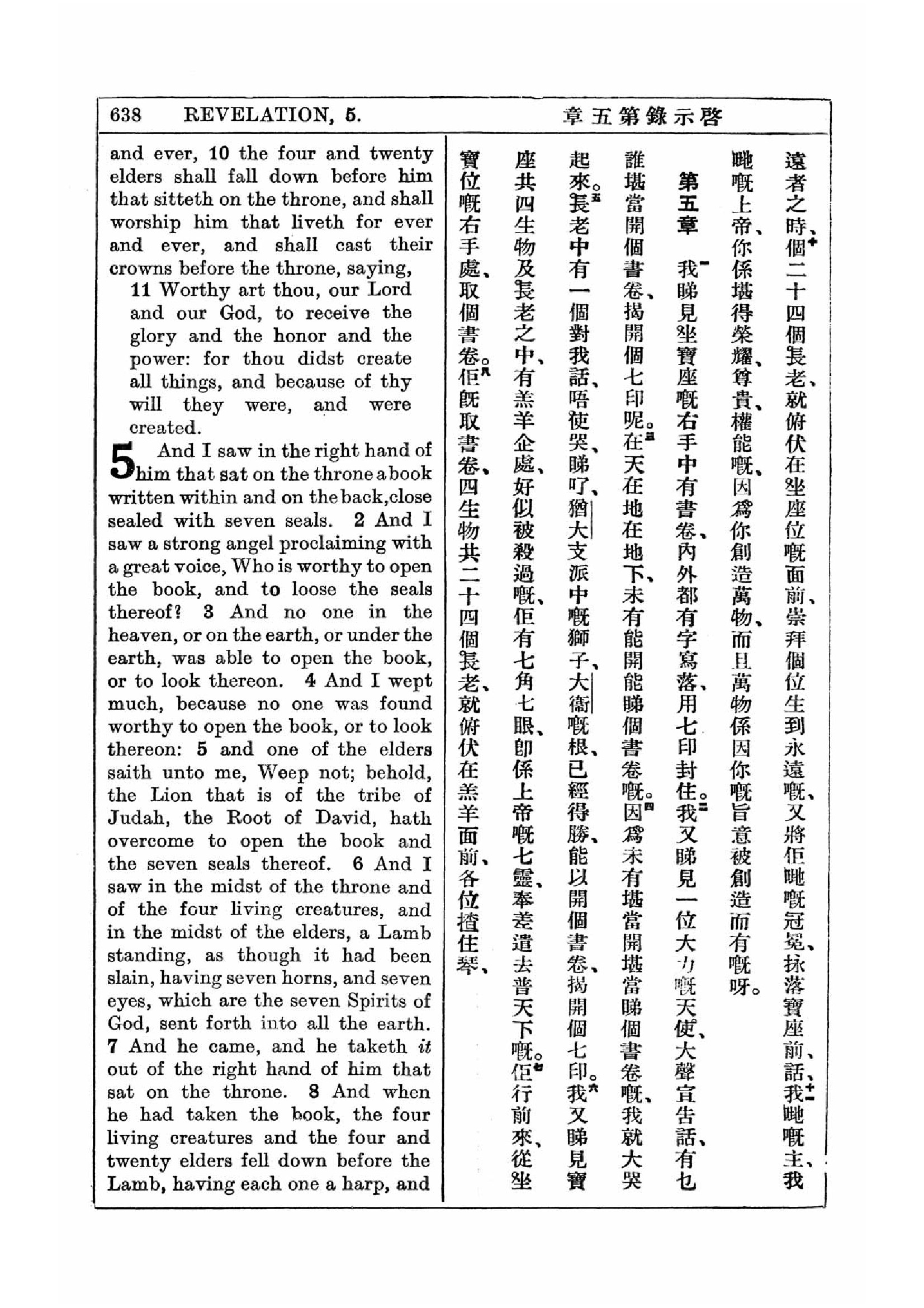 1927年新约全书(中英对照) 启示录 4 章 10 节到 5 章 8 节
