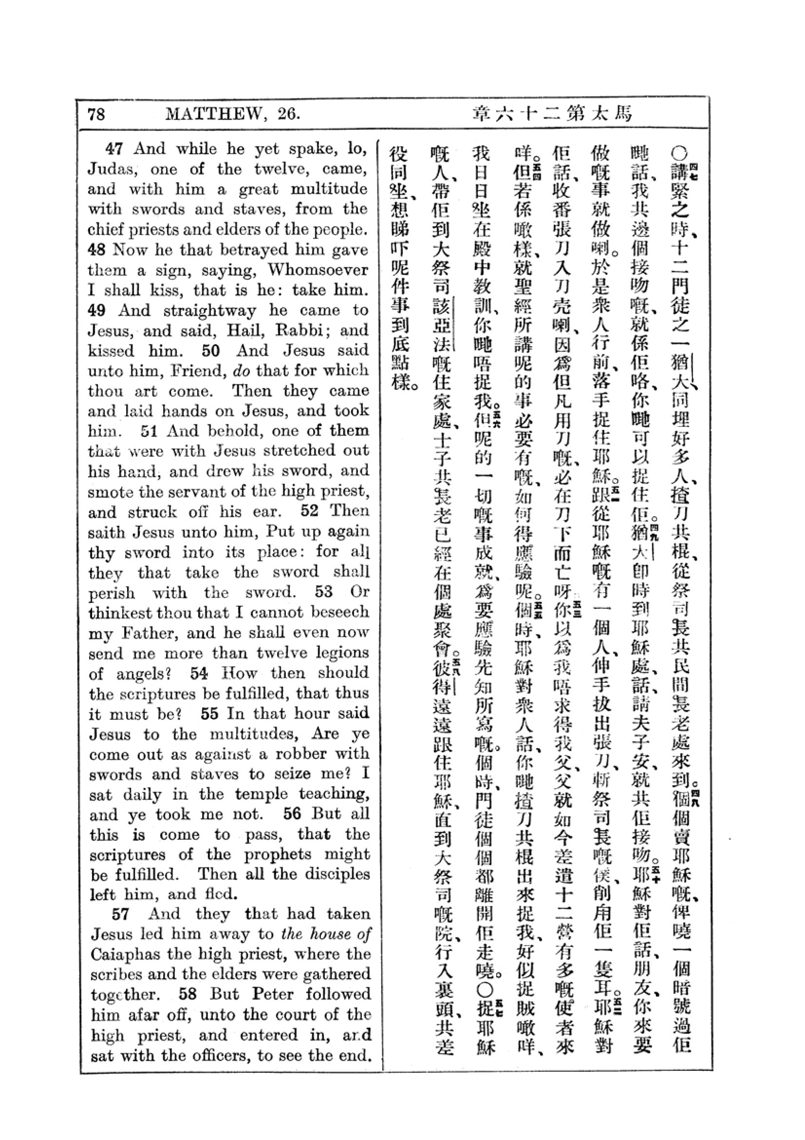 1927年新约全书(中英对照) 马太福音 26 章 47 节到 26 章 58 节