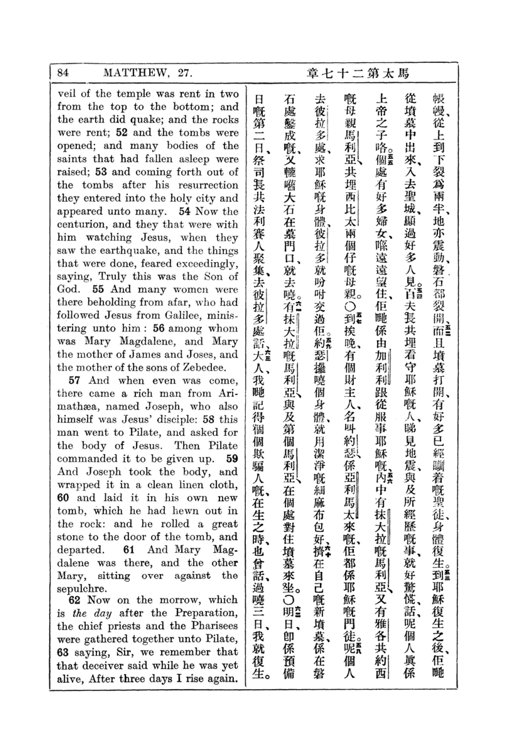 1927年新约全书(中英对照) 马太福音 27 章 51 节到 27 章 63 节