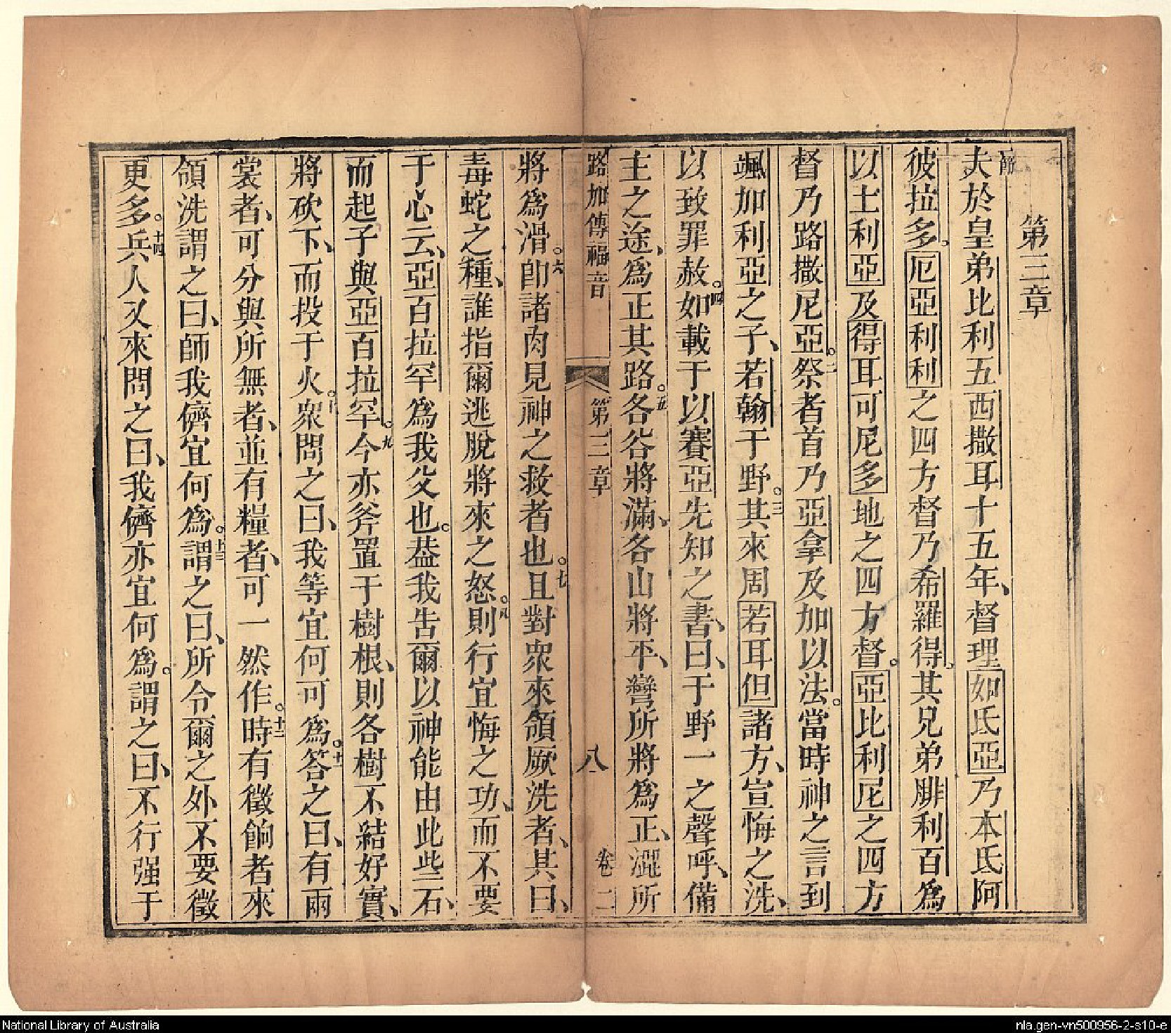 1826年我等救世主耶稣新遗诏书(新约全书) 路加福音 3 章 1 节到 3 章 14 节