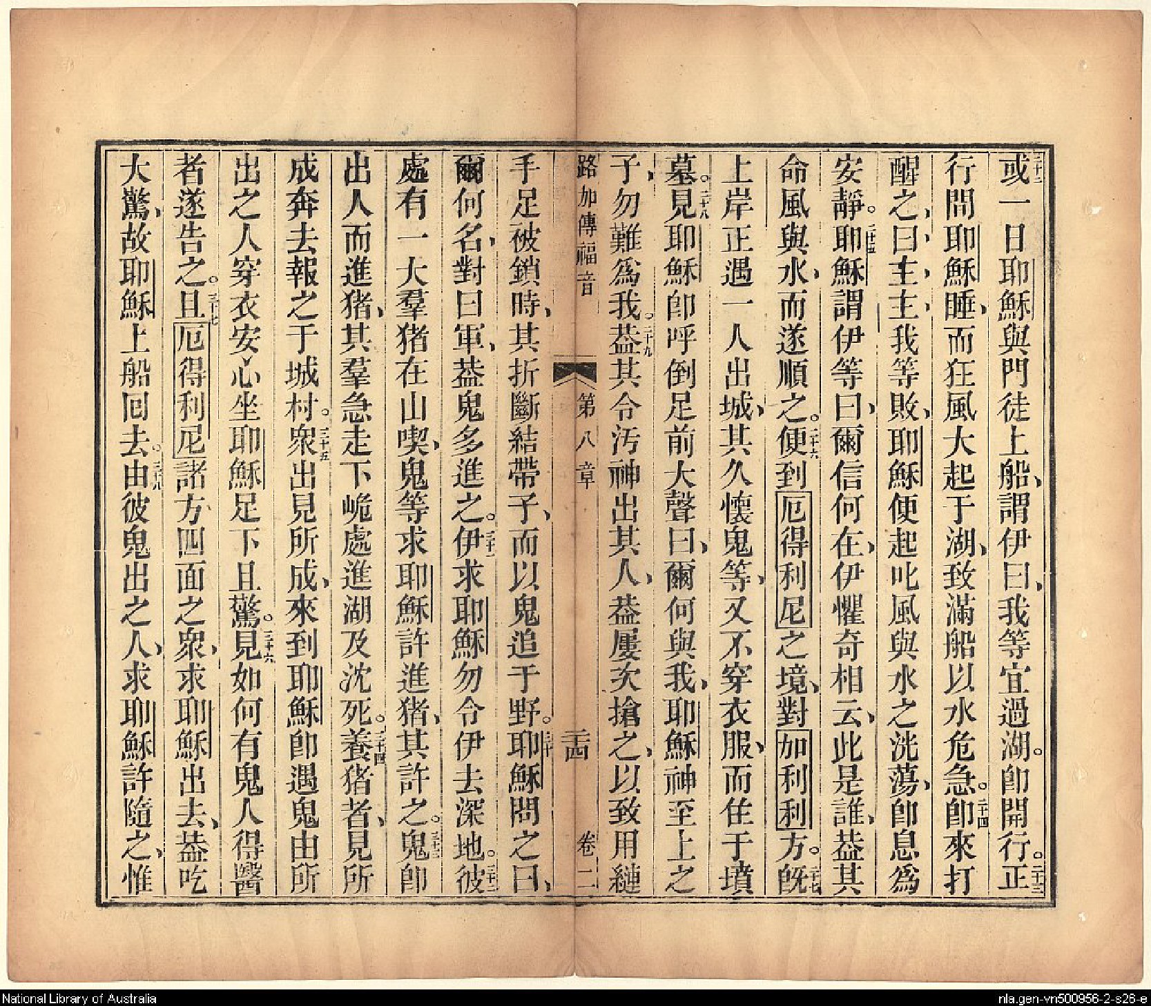 1826年我等救世主耶稣新遗诏书(新约全书) 路加福音 8 章 22 节到 8 章 38 节