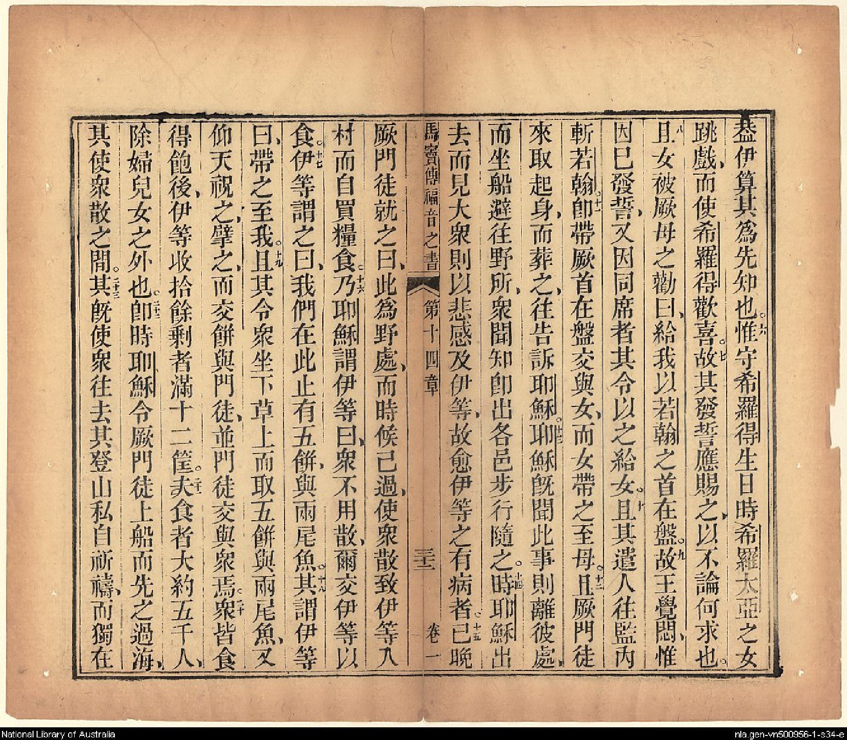 1826年我等救世主耶稣新遗诏书(新约全书) 马太福音 14 章 5 节到 14 章 23 节