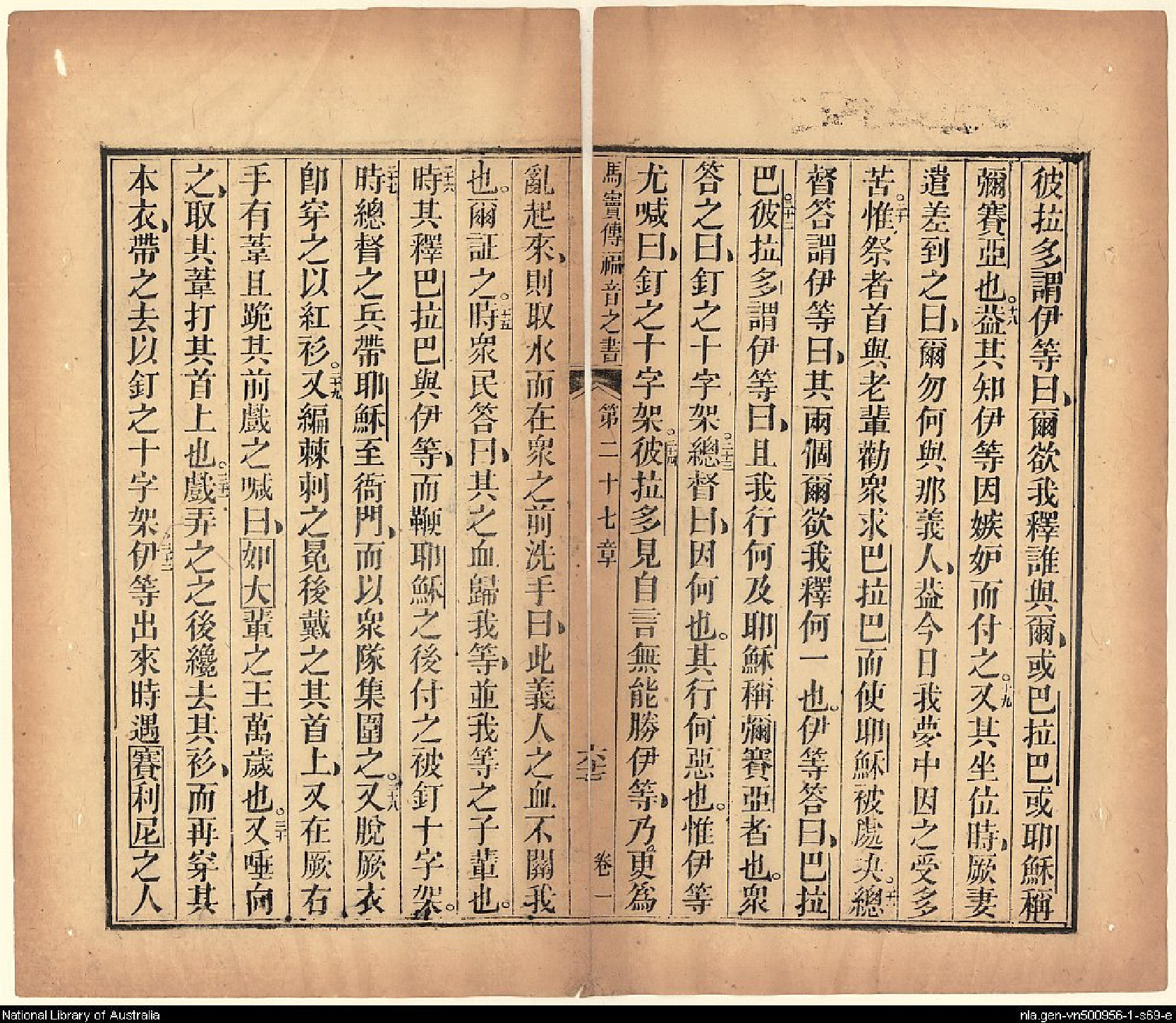 1826年我等救世主耶稣新遗诏书(新约全书) 马太福音 27 章 17 节到 27 章 32 节