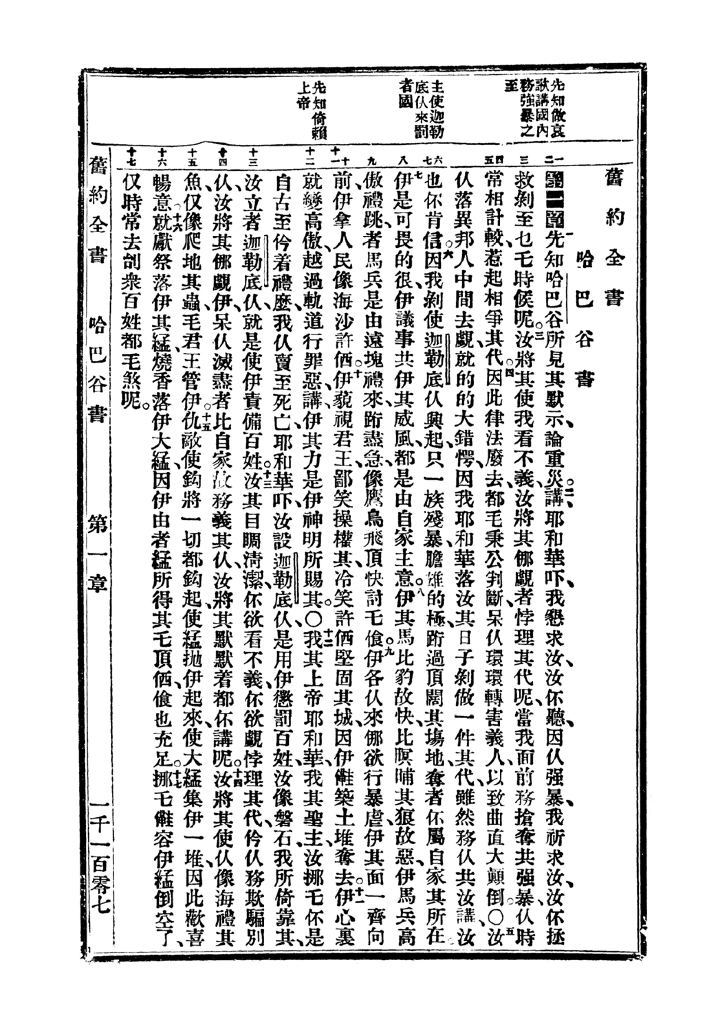 1940年福州土白《新旧约全书》 哈巴谷书 1 章 1 节到 1 章 17 节