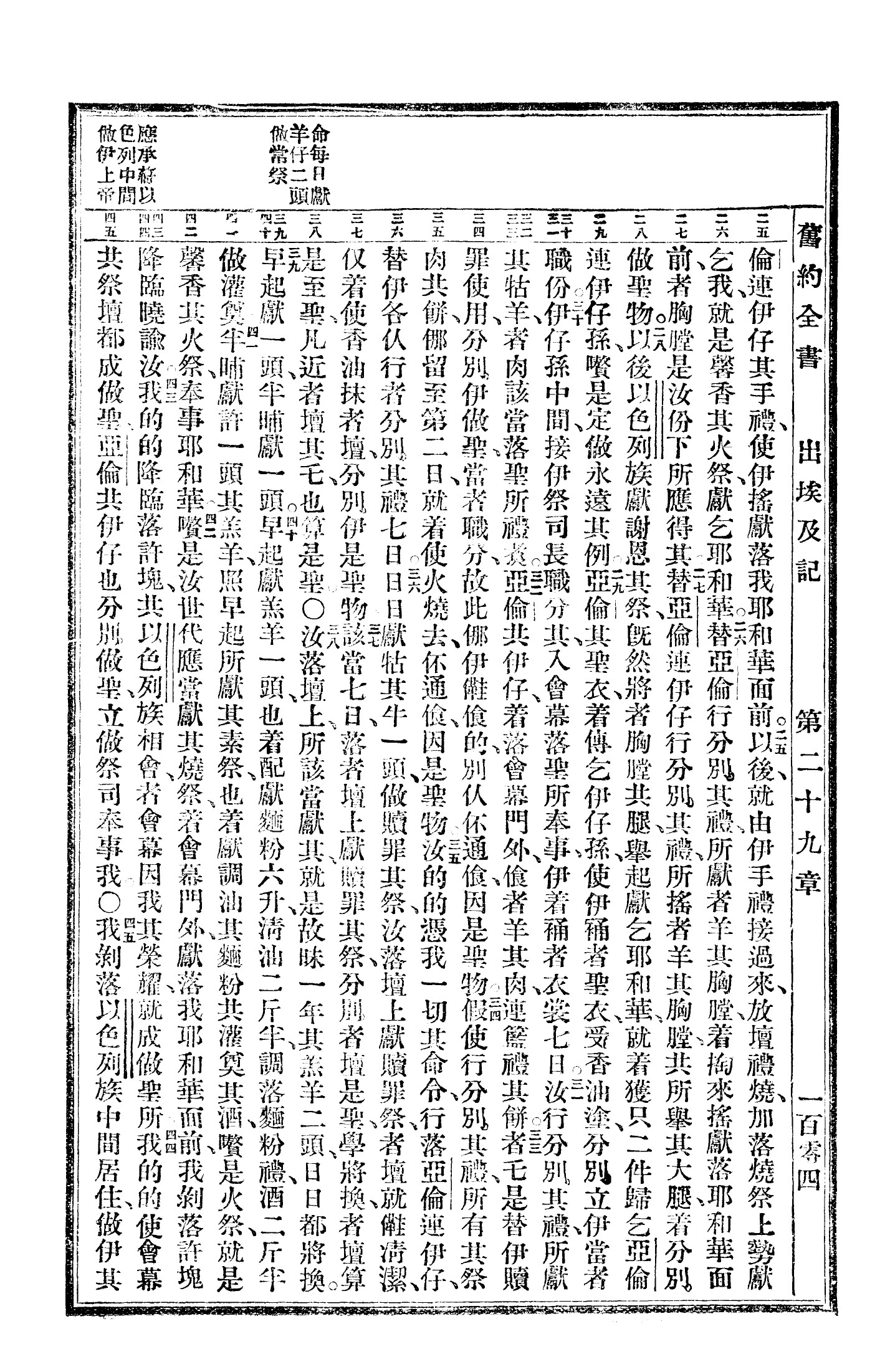 1940年福州土白《新旧约全书》 出埃及记 29 章 25 节到 29 章 45 节
