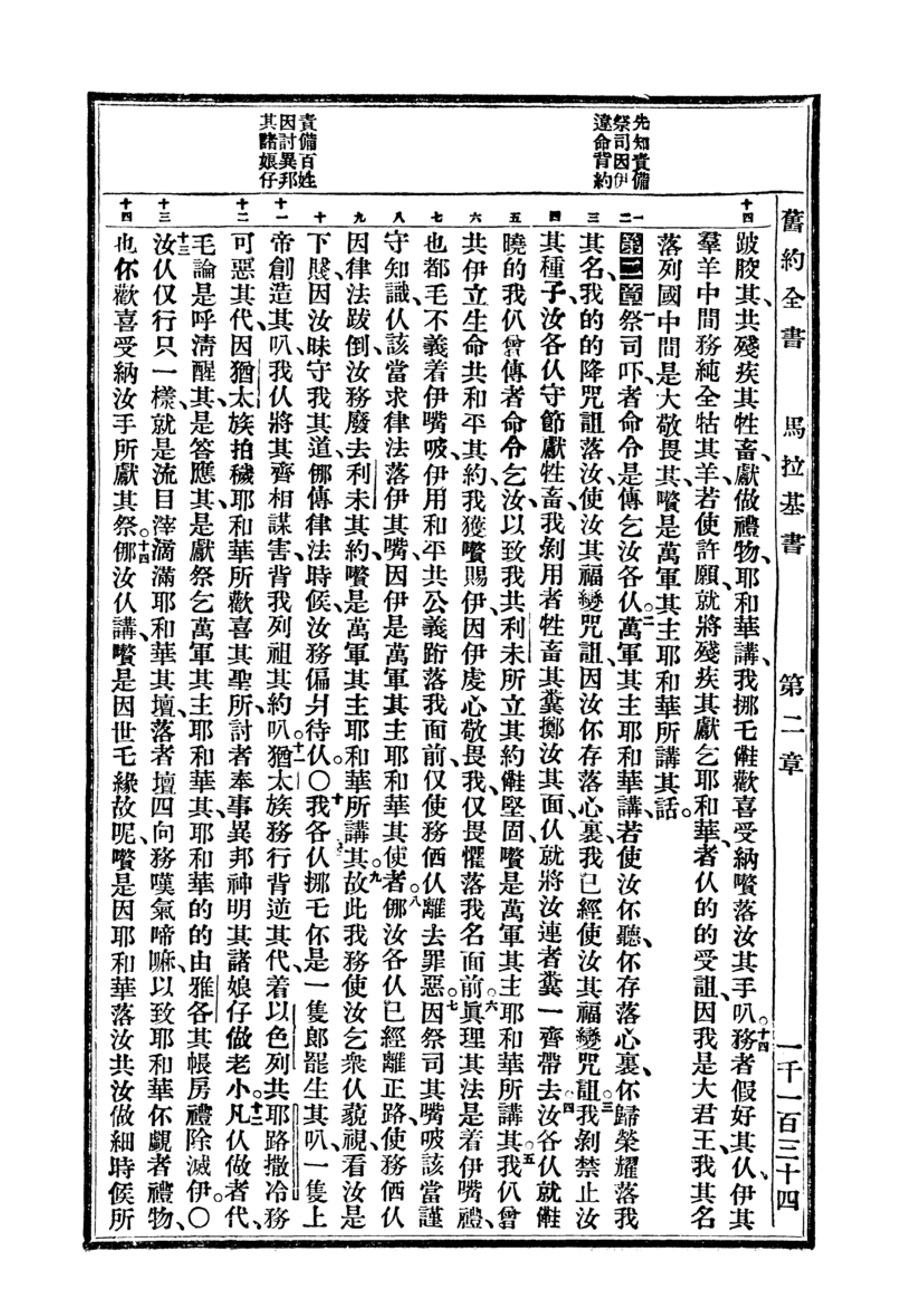 1940年福州土白《新旧约全书》 玛拉基书 1 章 14 节到 2 章 14 节