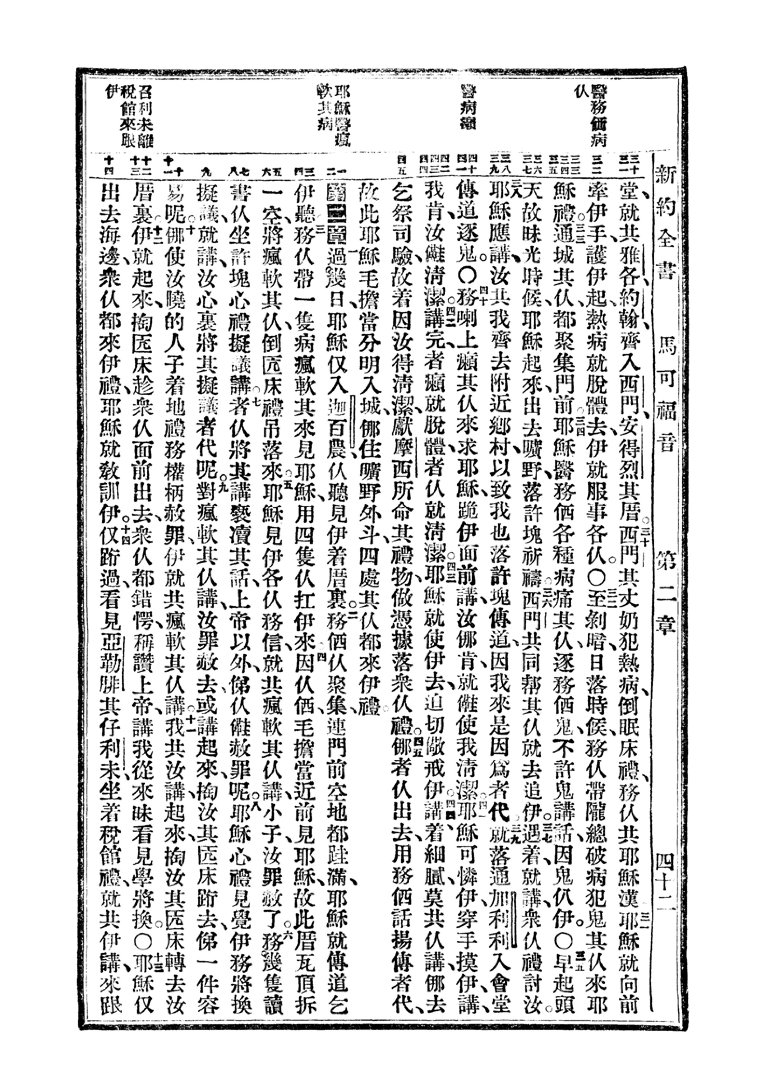 1940年福州土白《新旧约全书》 马可福音 1 章 30 节到 2 章 14 节