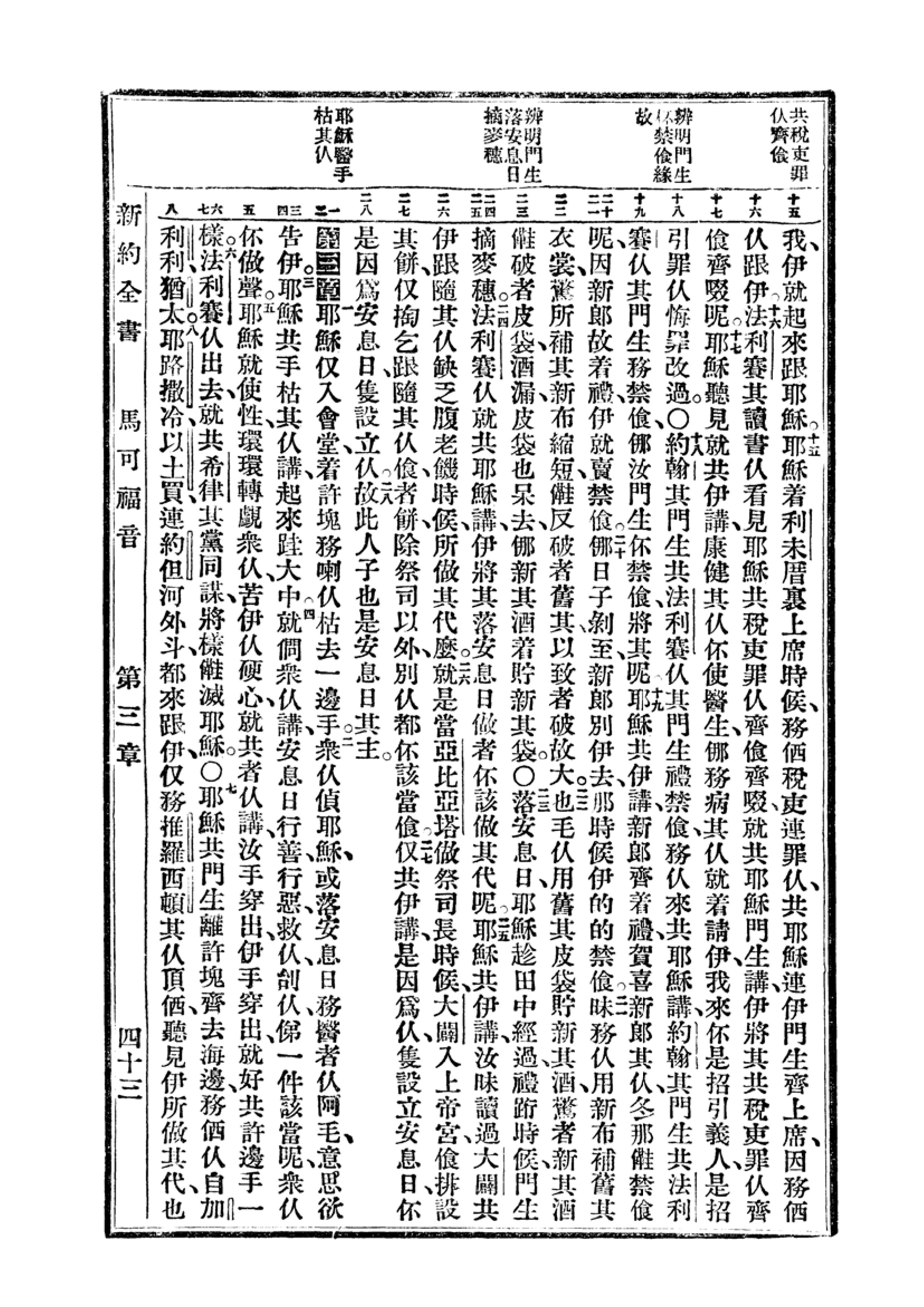 1940年福州土白《新旧约全书》 马可福音 2 章 15 节到 3 章 8 节