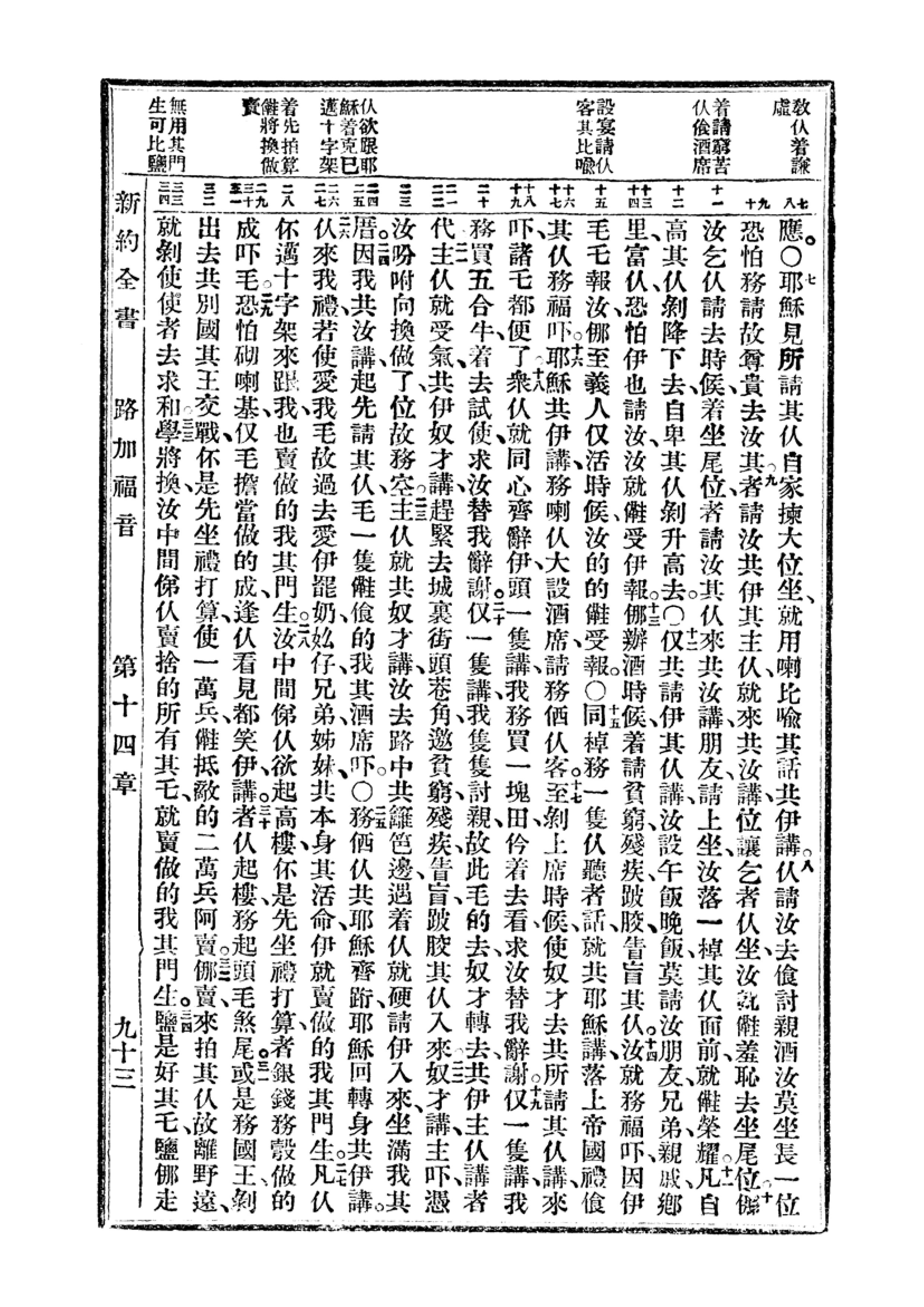 1940年福州土白《新旧约全书》 路加福音 14 章 7 节到 14 章 34 节