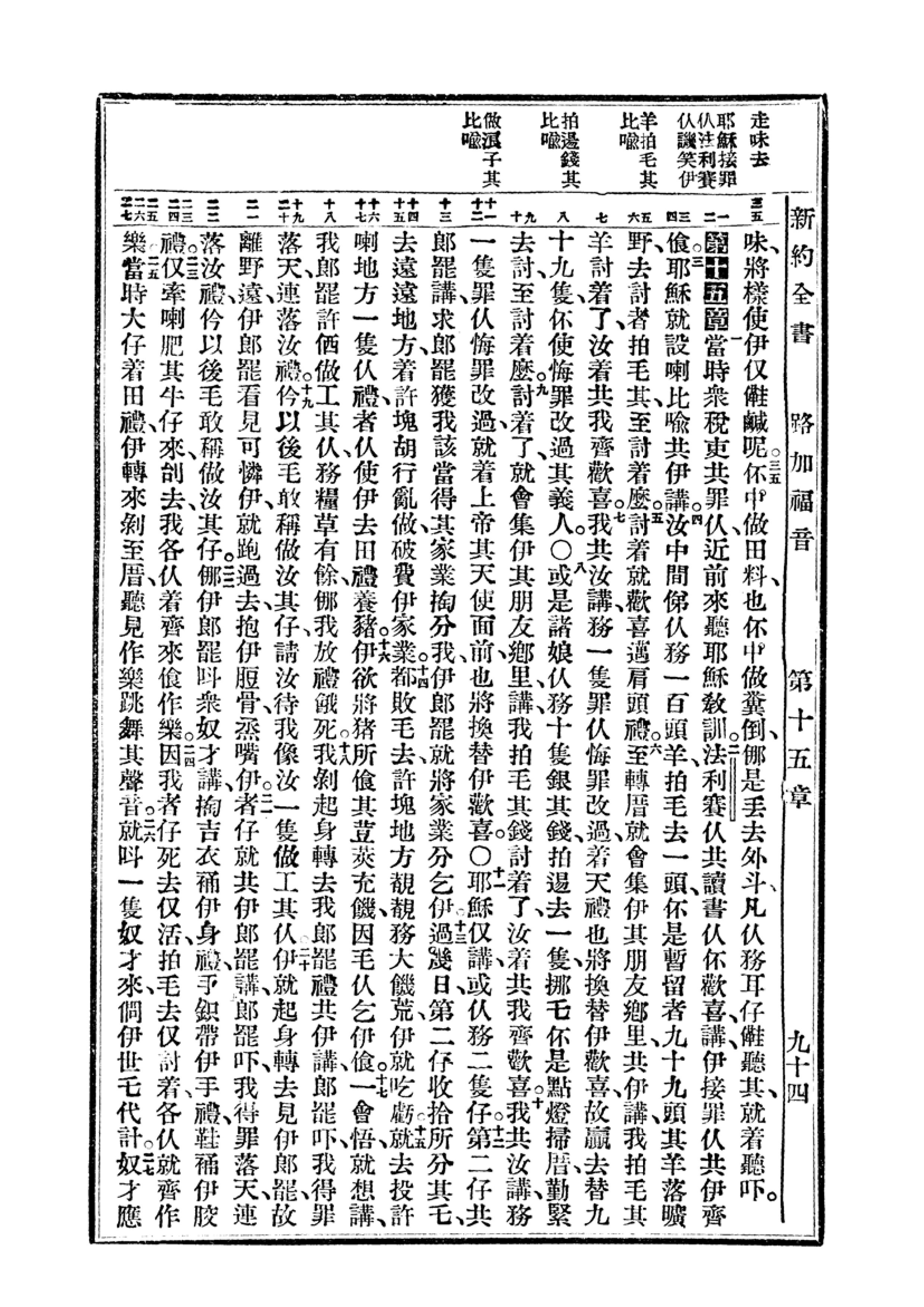 1940年福州土白《新旧约全书》 路加福音 14 章 35 节到 15 章 27 节