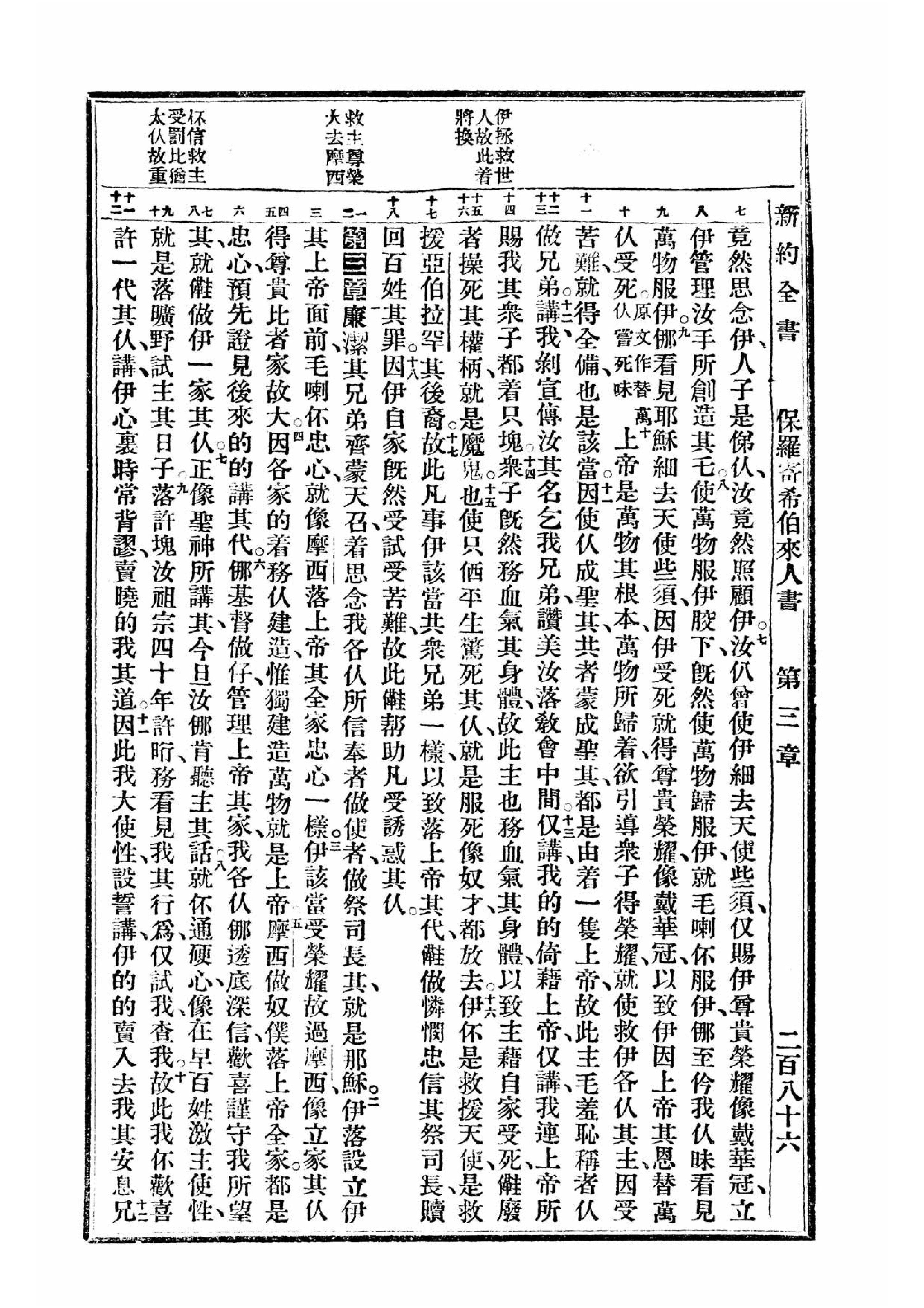1940年福州土白《新旧约全书》 希伯来书 2 章 7 节到 3 章 12 节