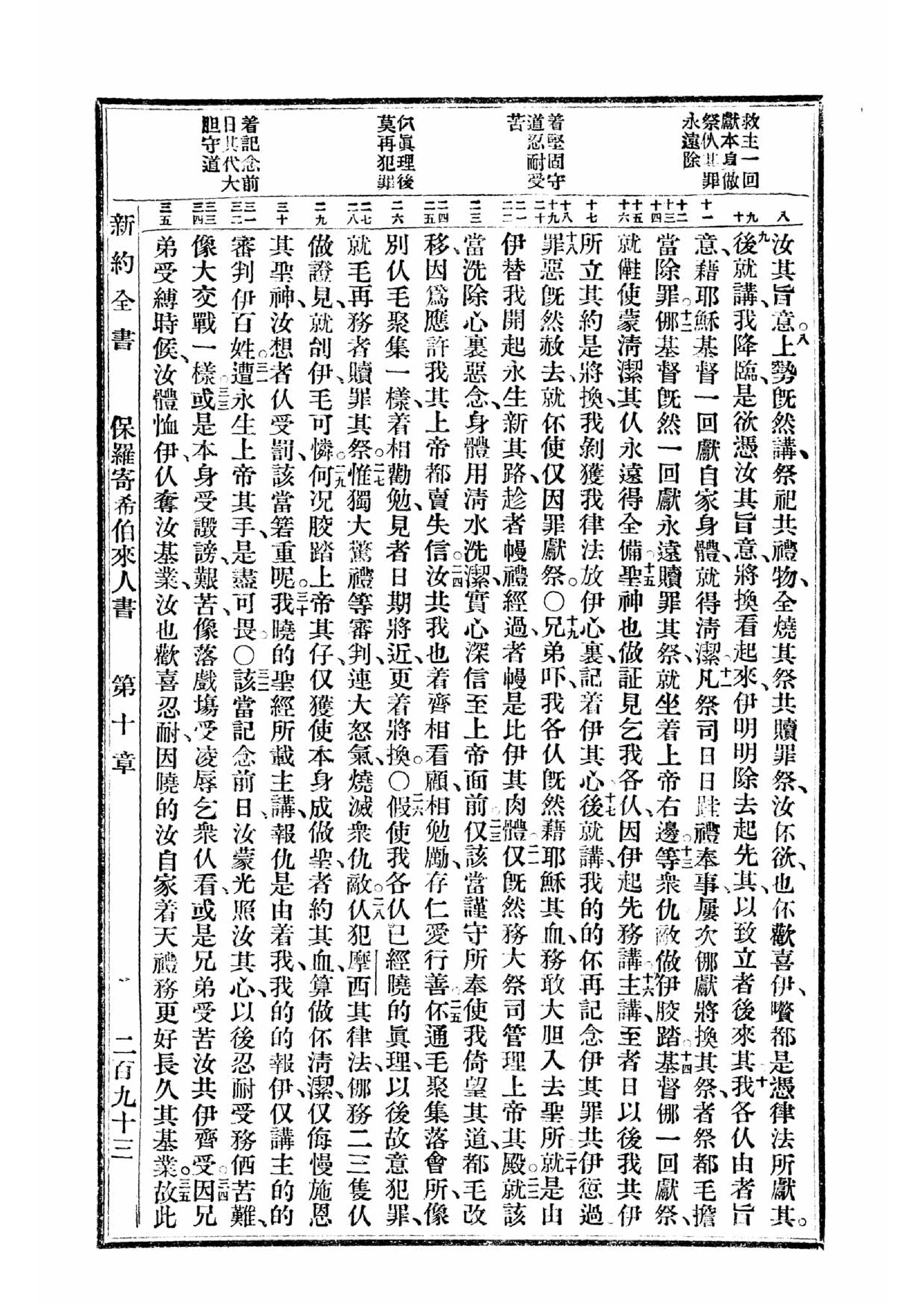 1940年福州土白《新旧约全书》 希伯来书 10 章 8 节到 10 章 35 节