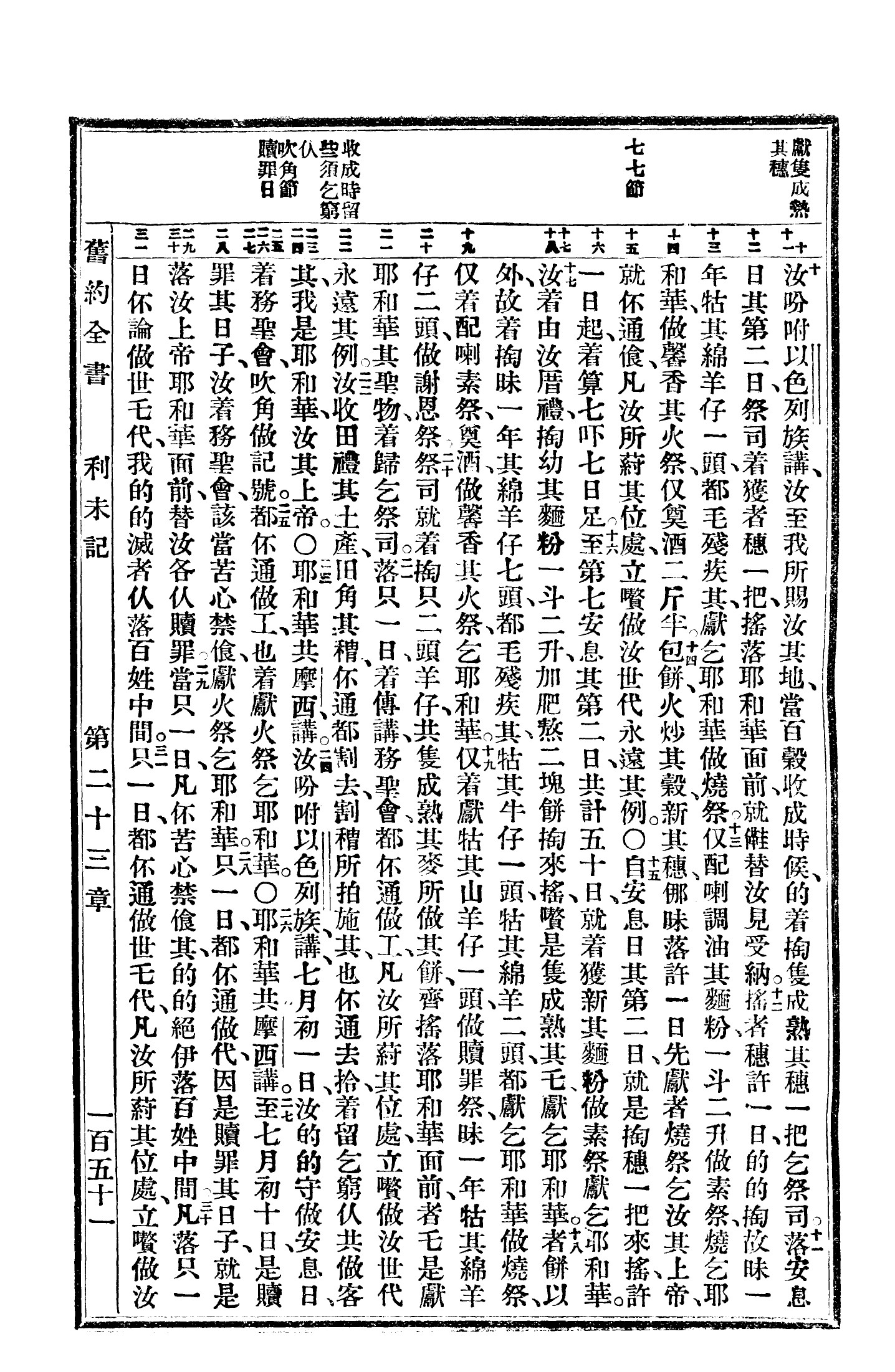 1940年福州土白《新旧约全书》 利未记 23 章 10 节到 23 章 31 节
