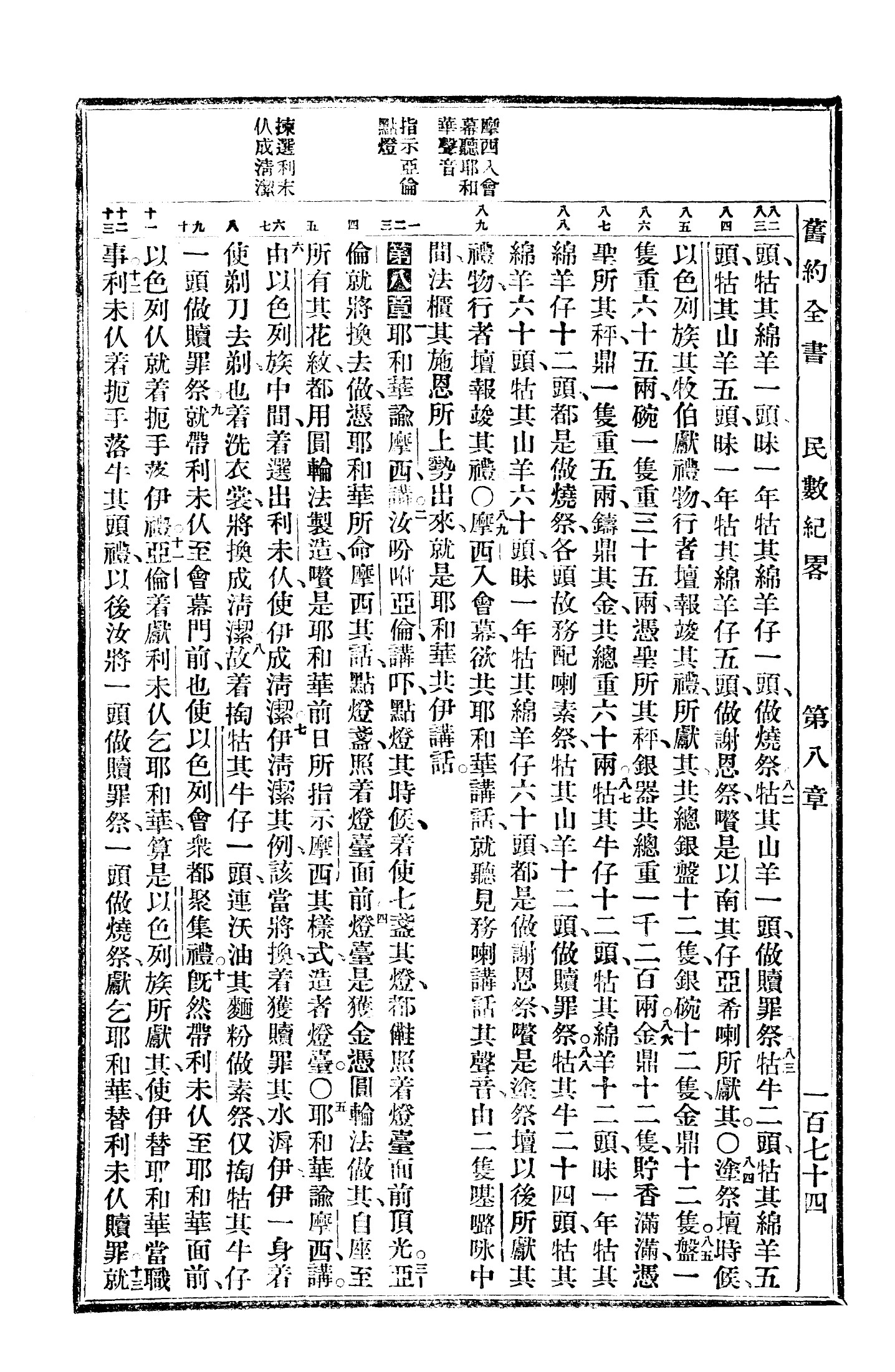 1940年福州土白《新旧约全书》 民数记 7 章 82 节到 8 章 13 节