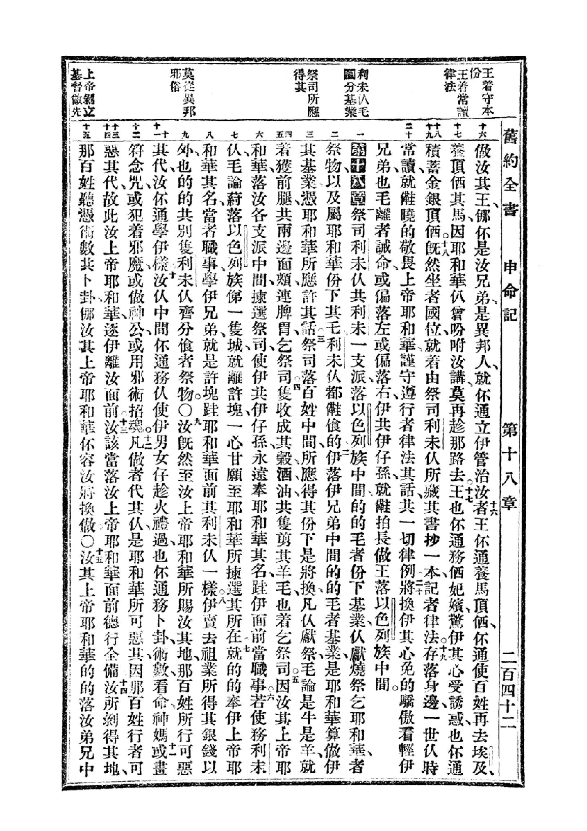 1940年福州土白《新旧约全书》 申命记 17 章 16 节到 18 章 15 节