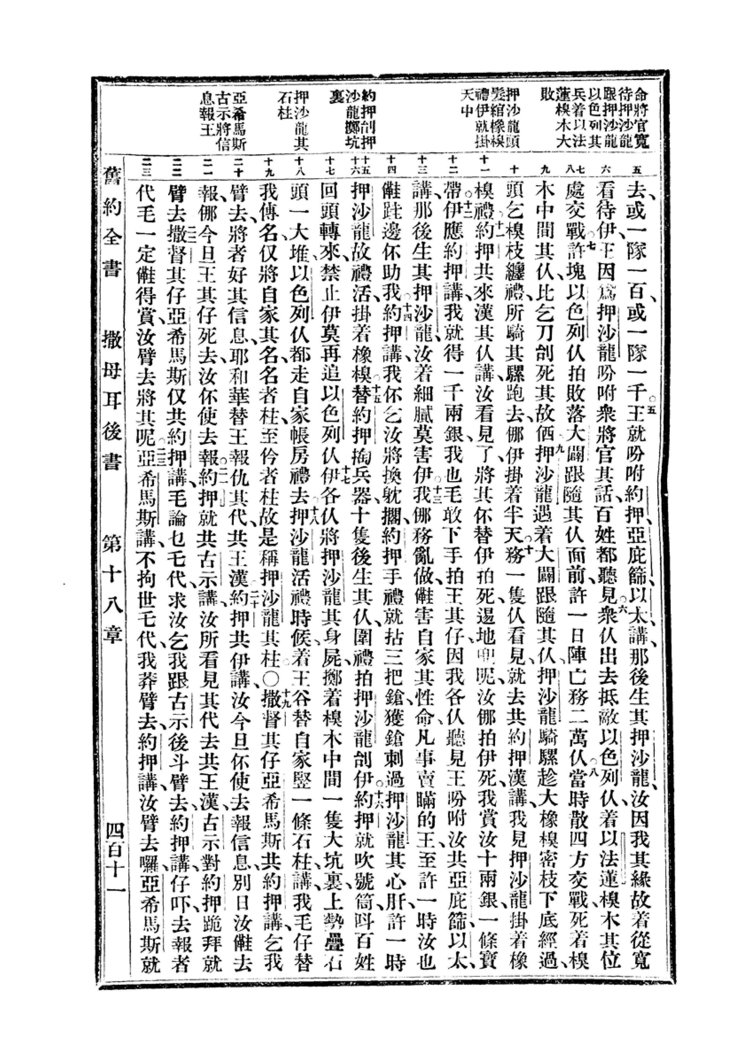 1940年福州土白《新旧约全书》 撒母耳记下 18 章 5 节到 18 章 23 节