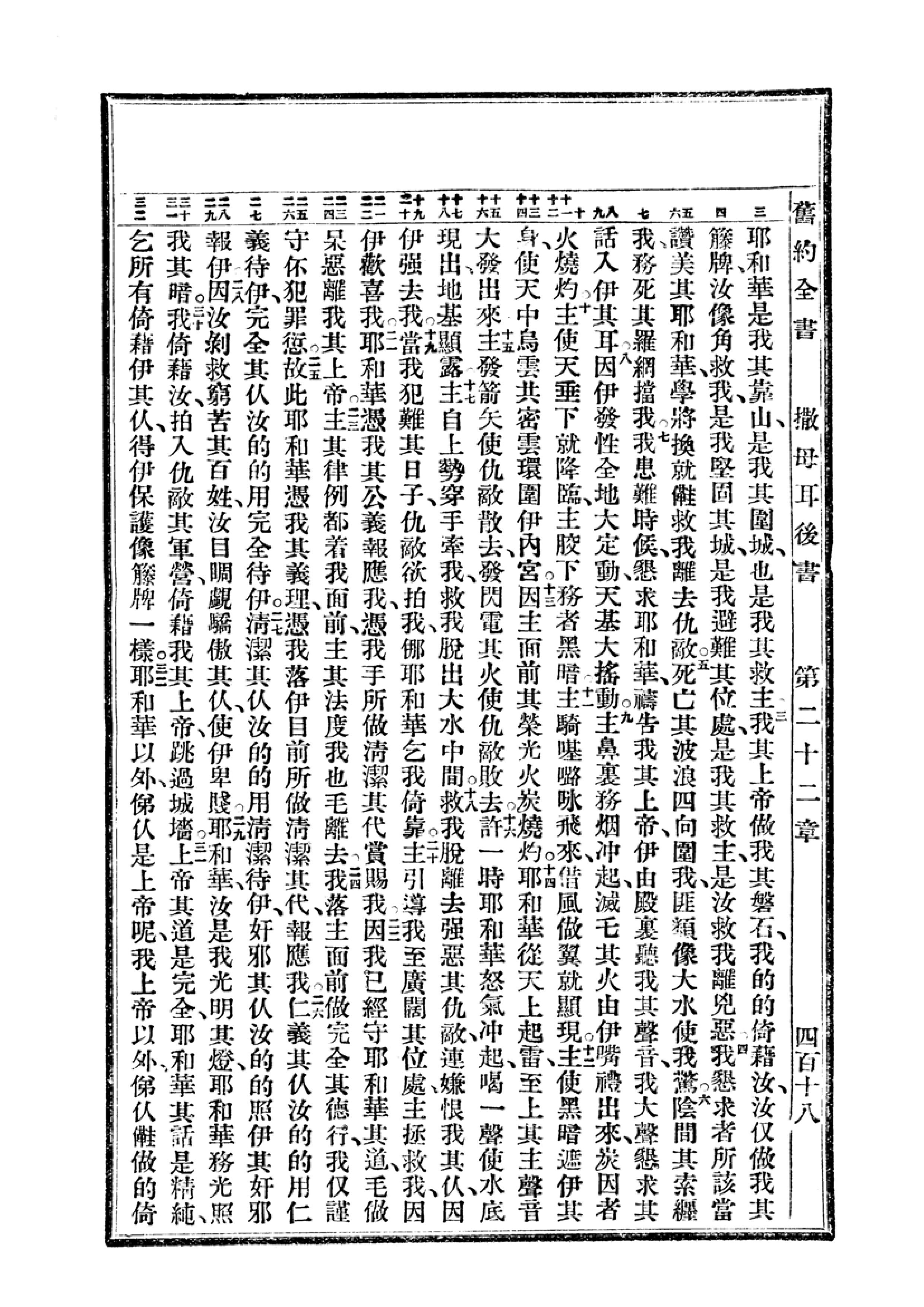 1940年福州土白《新旧约全书》 撒母耳记下 22 章 3 节到 22 章 32 节