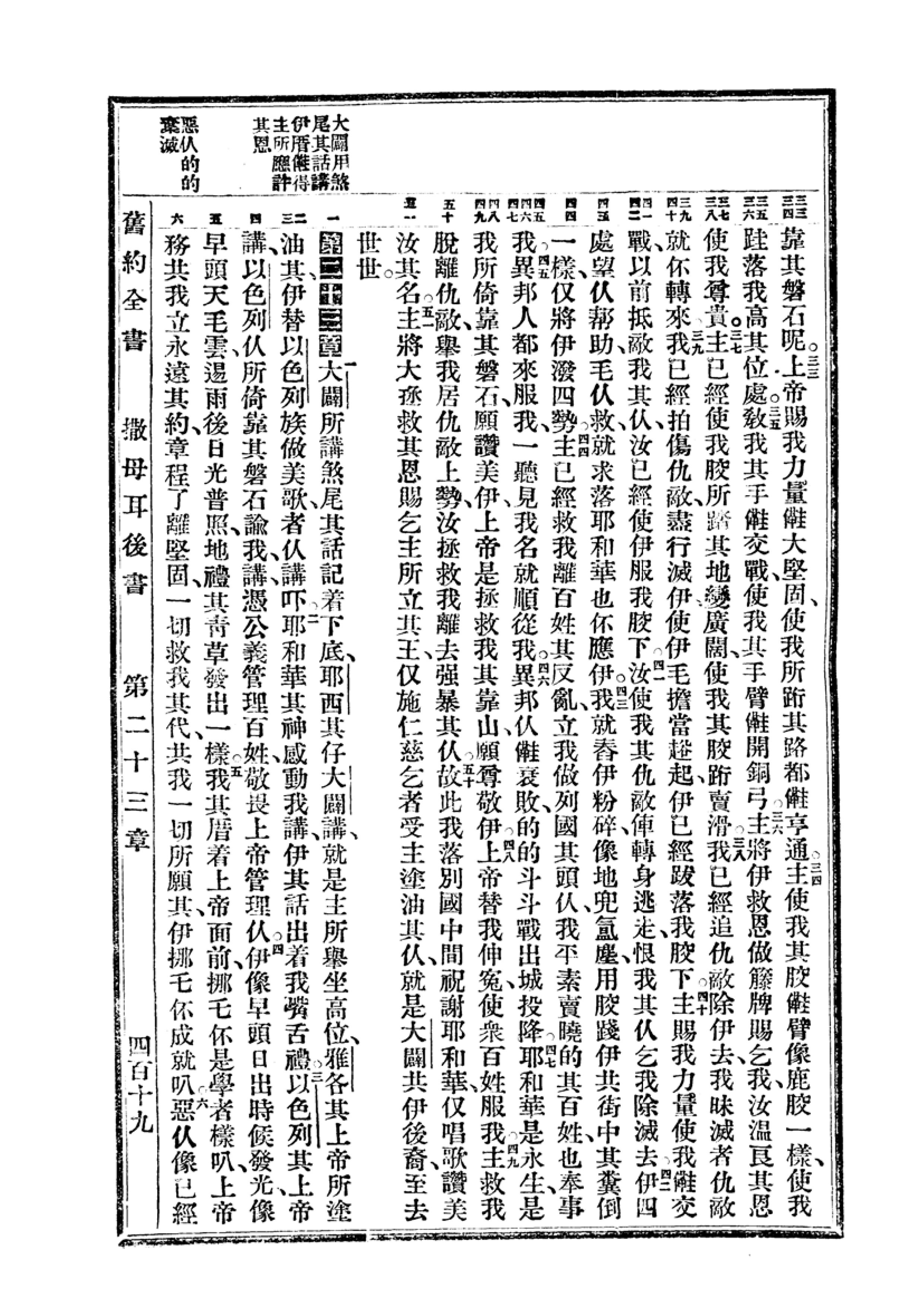 1940年福州土白《新旧约全书》 撒母耳记下 22 章 33 节到 23 章 6 节