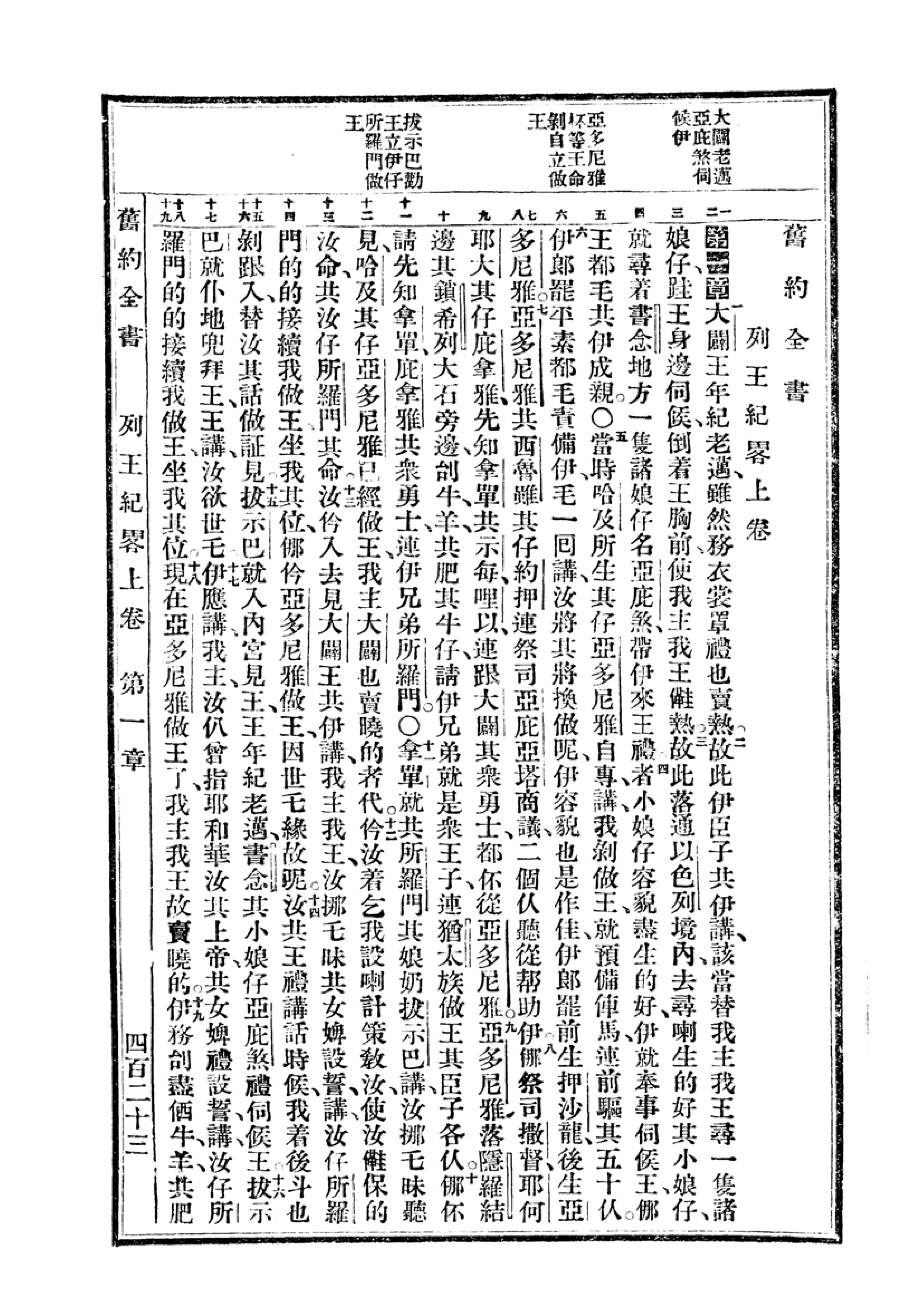 1940年福州土白《新旧约全书》 列王纪上 1 章 1 节到 1 章 19 节