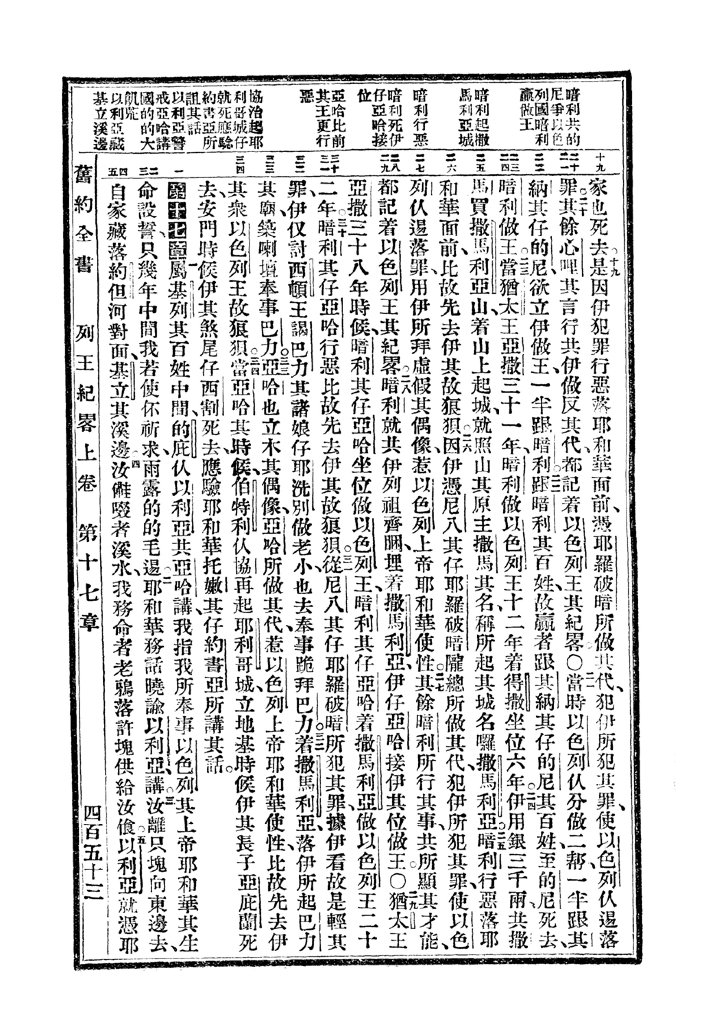 1940年福州土白《新旧约全书》 列王纪上 16 章 19 节到 17 章 5 节