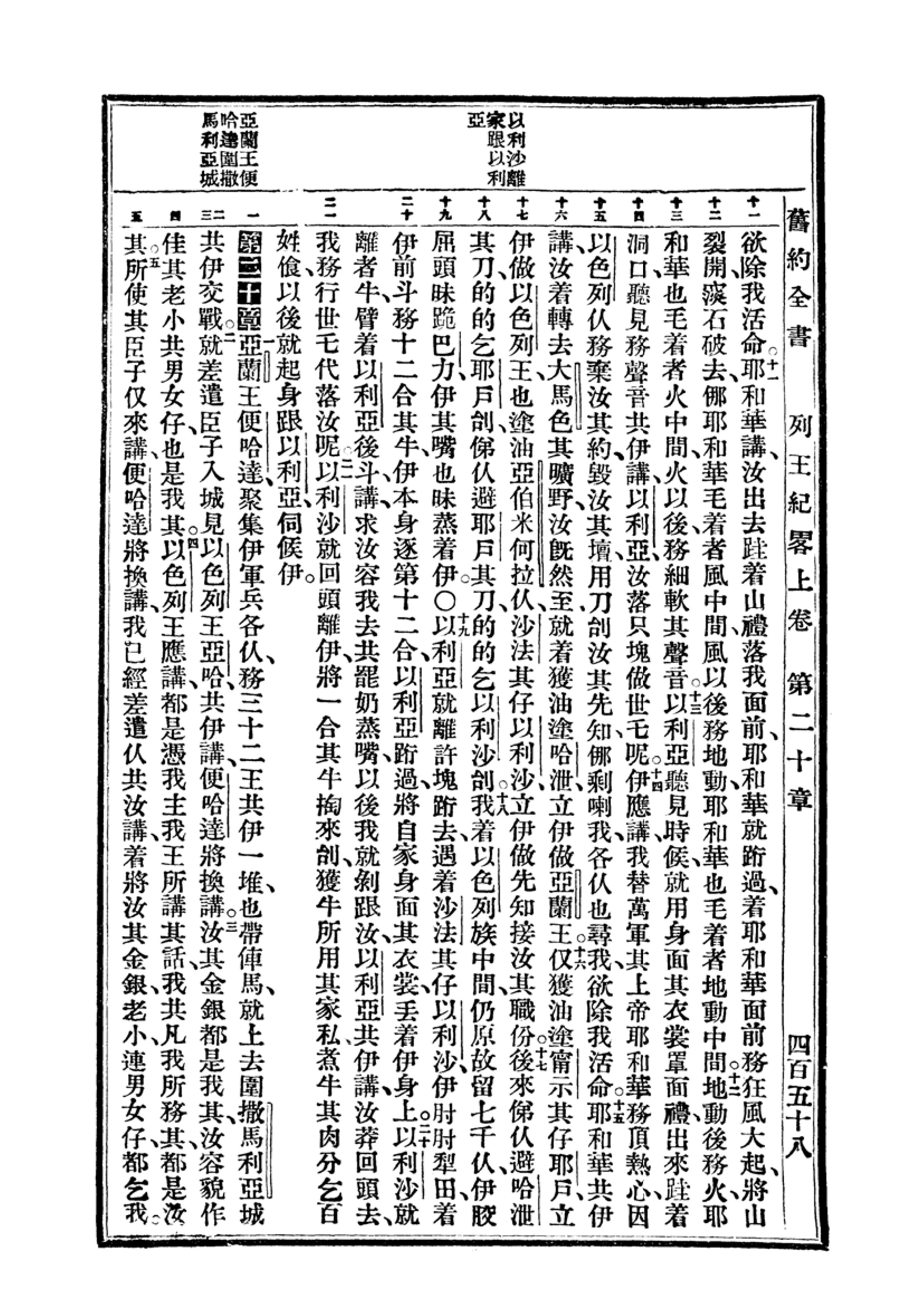 1940年福州土白《新旧约全书》 列王纪上 19 章 11 节到 20 章 5 节
