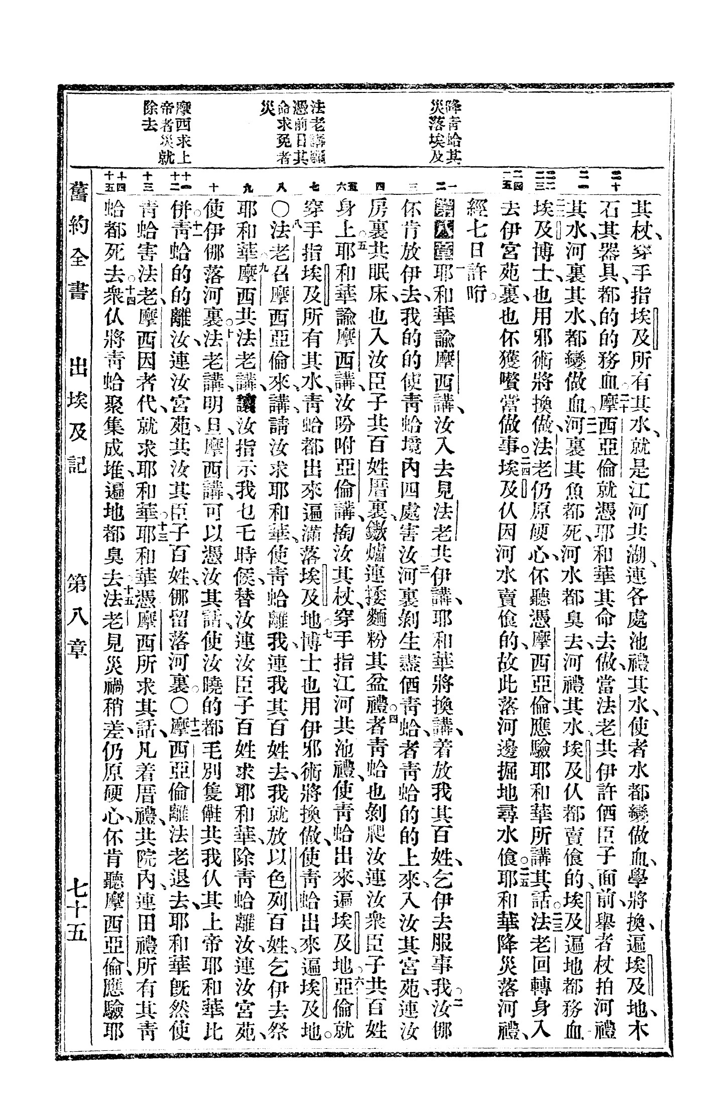 1940年福州土白《新旧约全书》 出埃及记 7 章 20 节到 8 章 15 节
