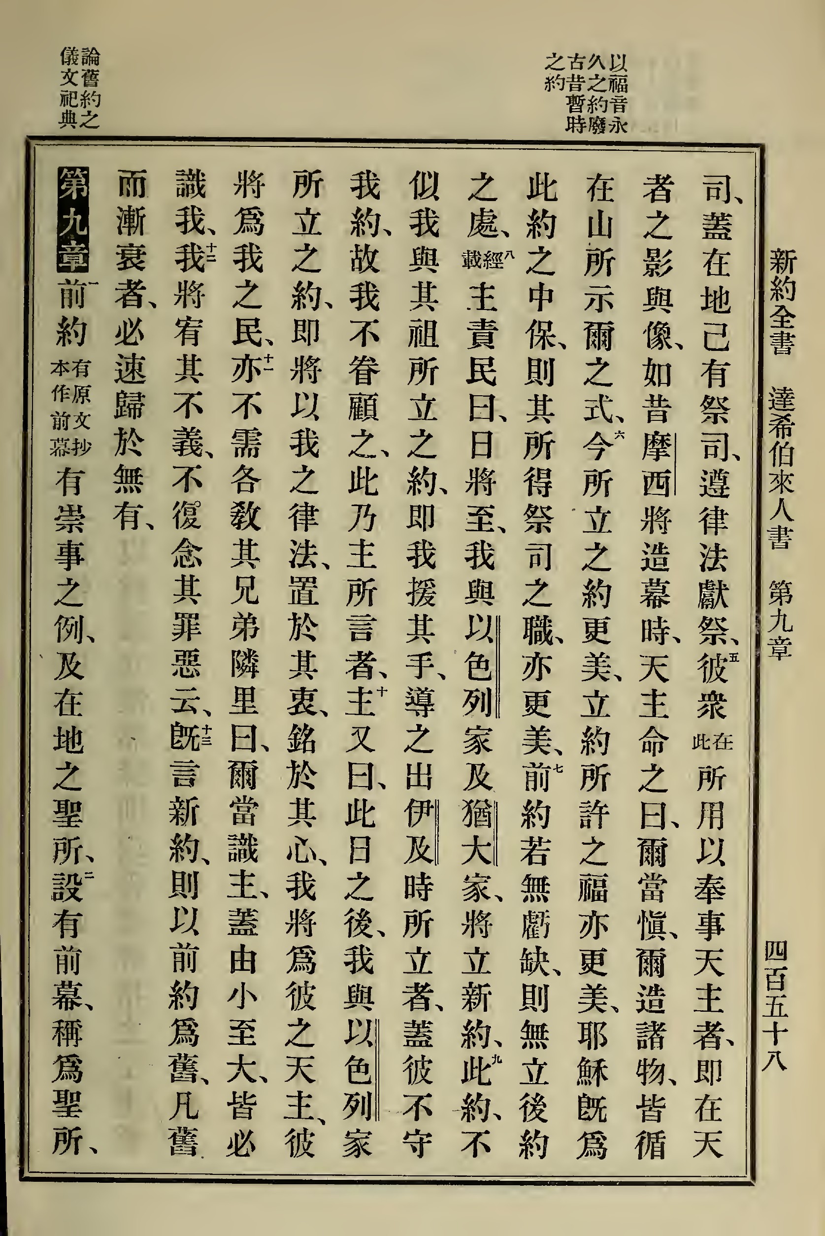 1898年新约全书 希伯来书 8 章 5 节到 9 章 2 节
