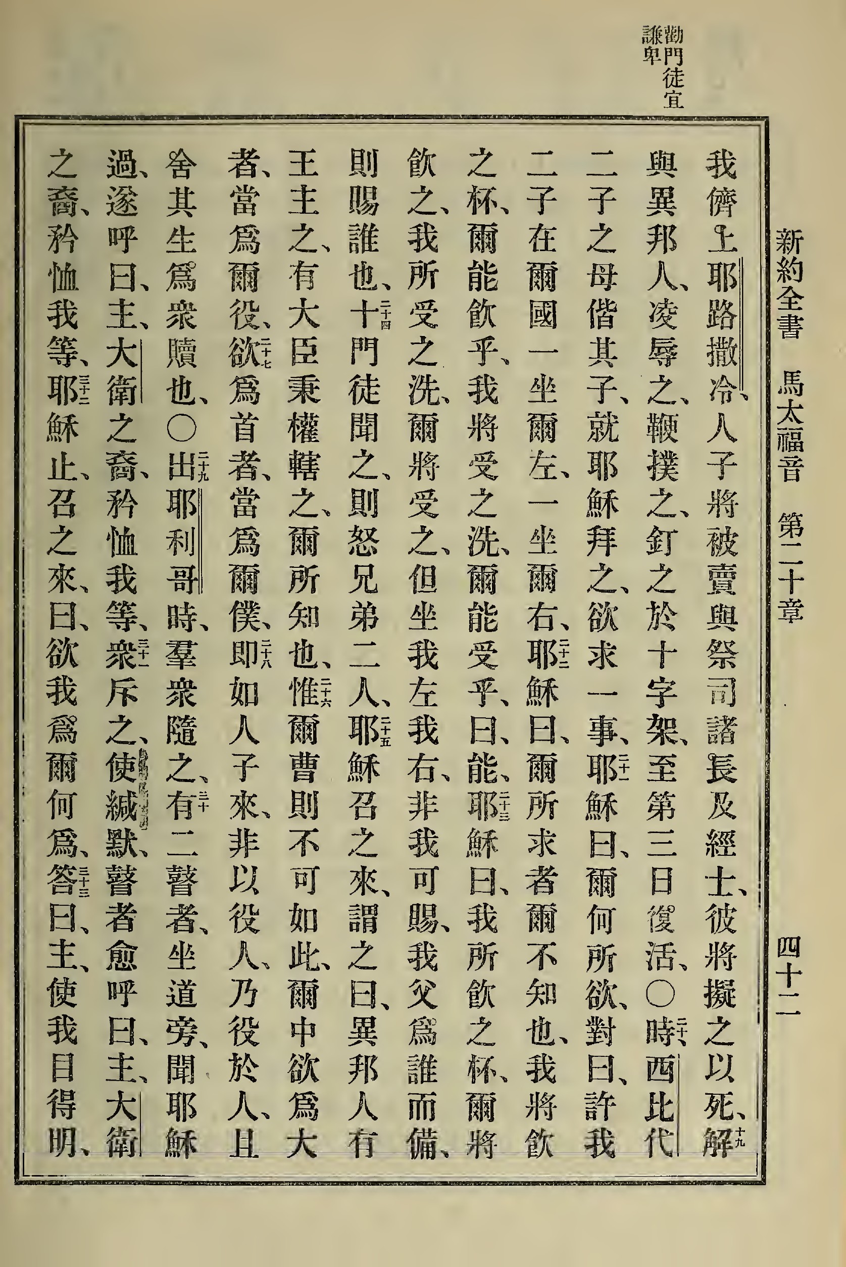 1898年新约全书 马太福音 20 章 18 节到 20 章 33 节