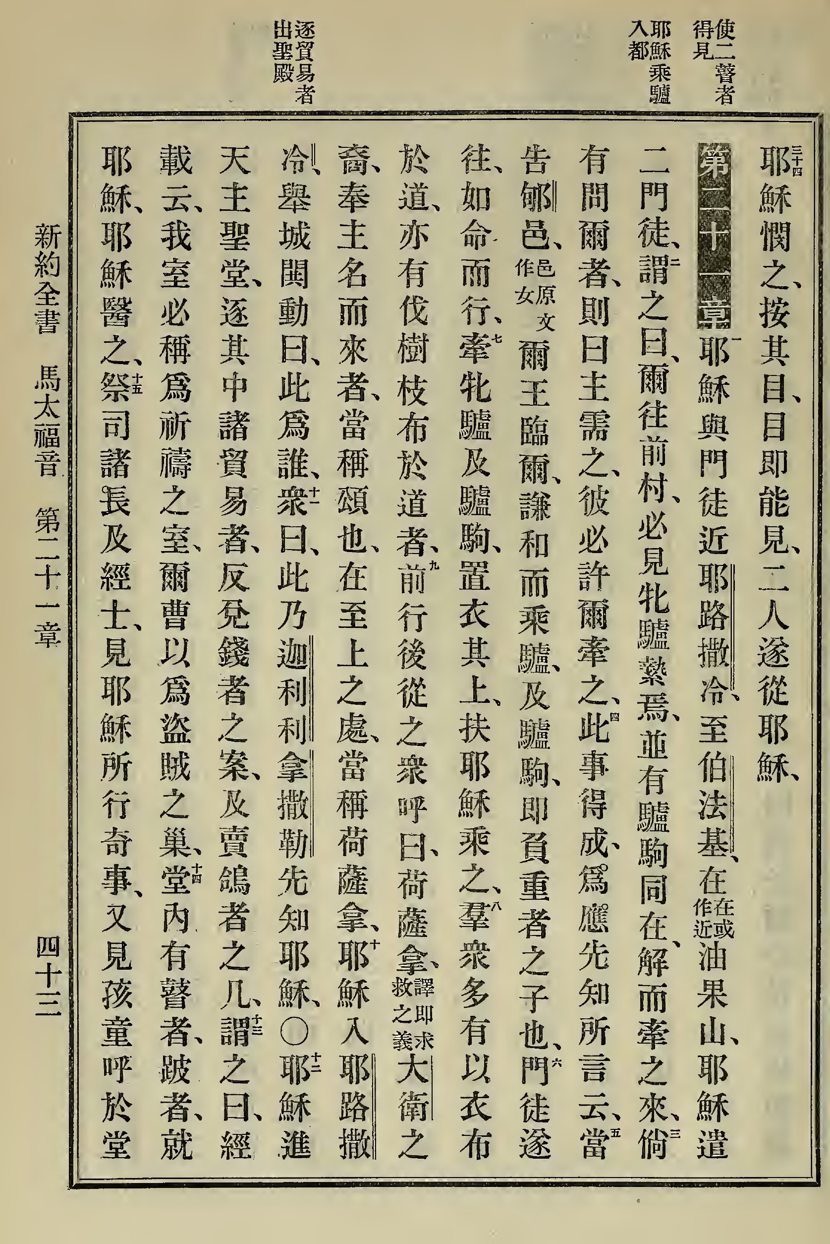 1898年新约全书 马太福音 20 章 34 节到 21 章 15 节