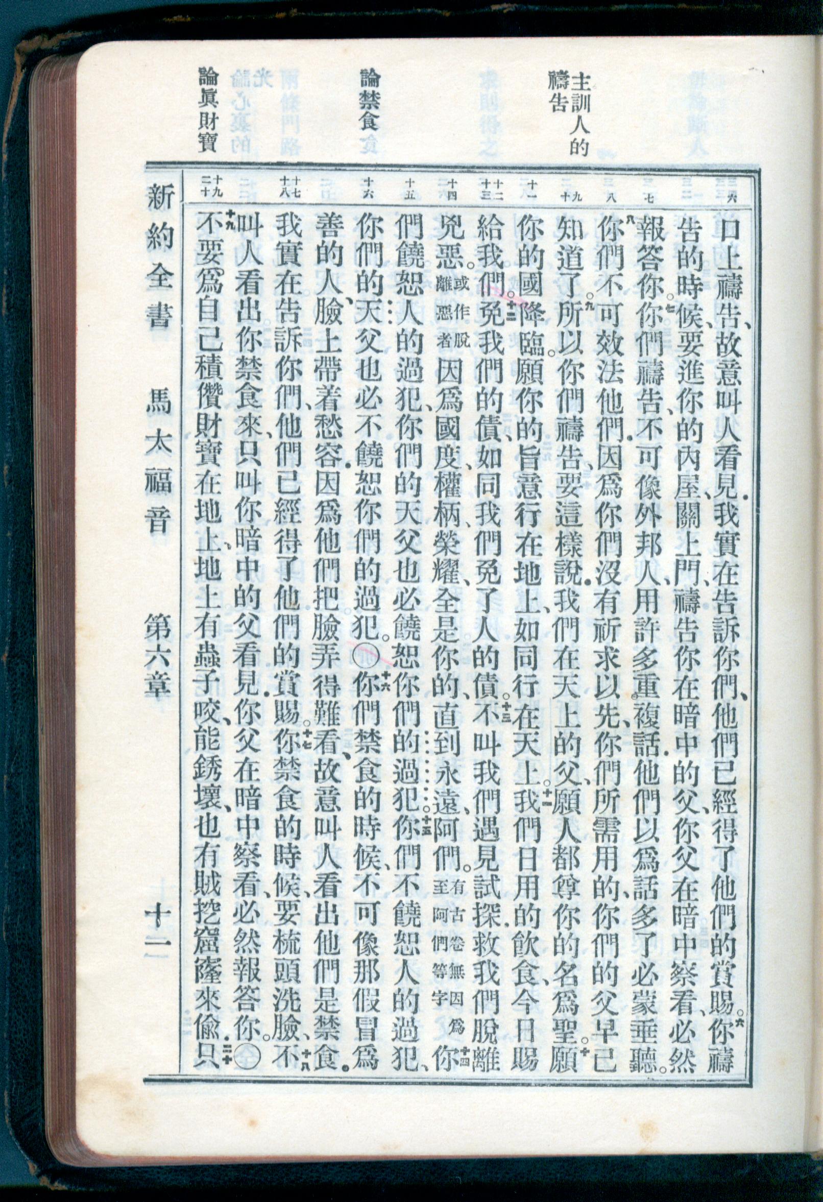1934年新约全书(官话和合本) 马太福音 6 章 6 节到 6 章 19 节