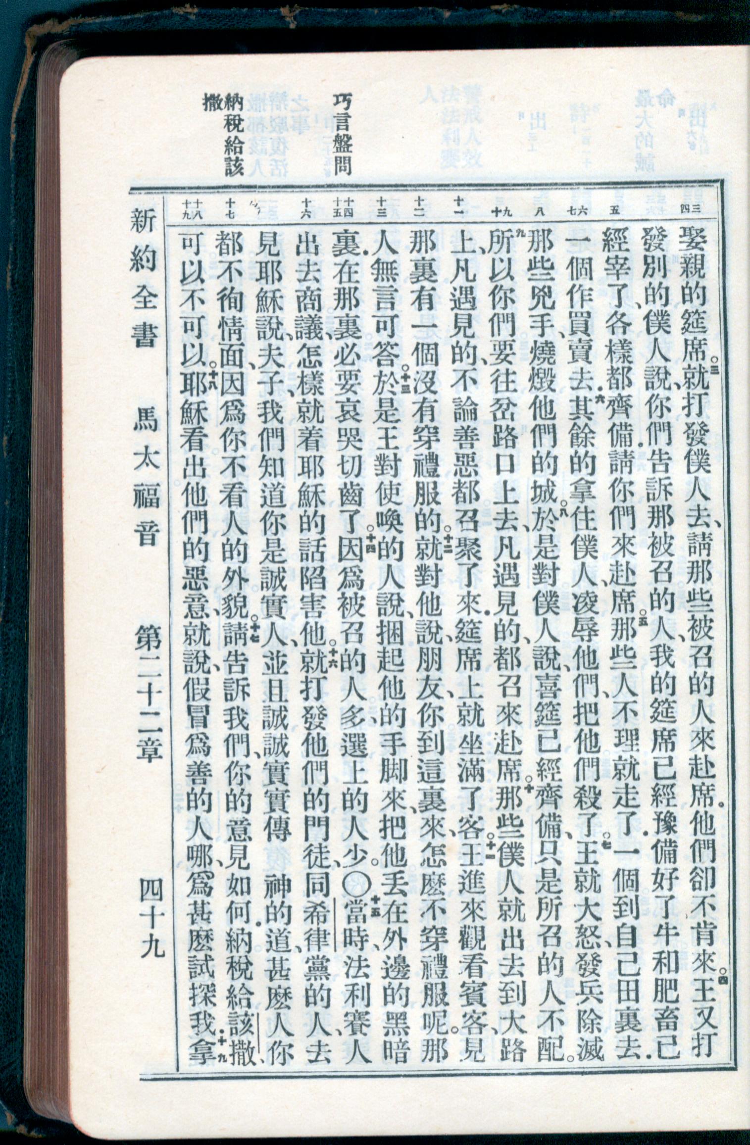 1934年新约全书(官话和合本) 马太福音 22 章 3 节到 22 章 19 节