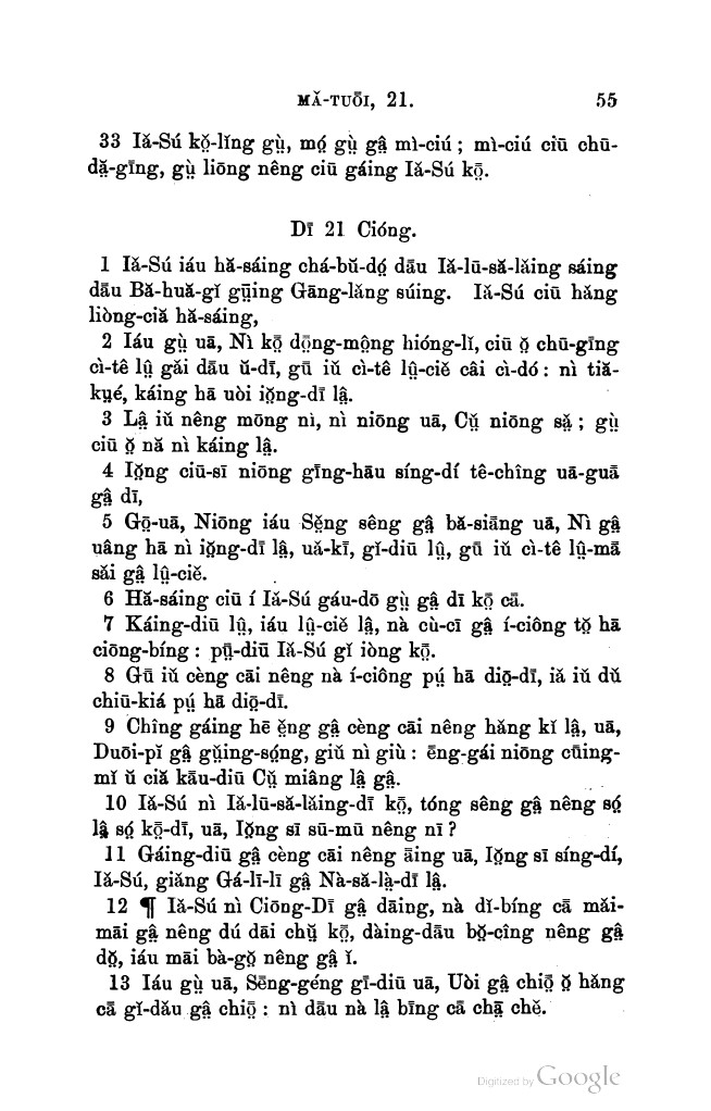 1896年新约全书 马太福音 20 章 33 节到 21 章 13 节