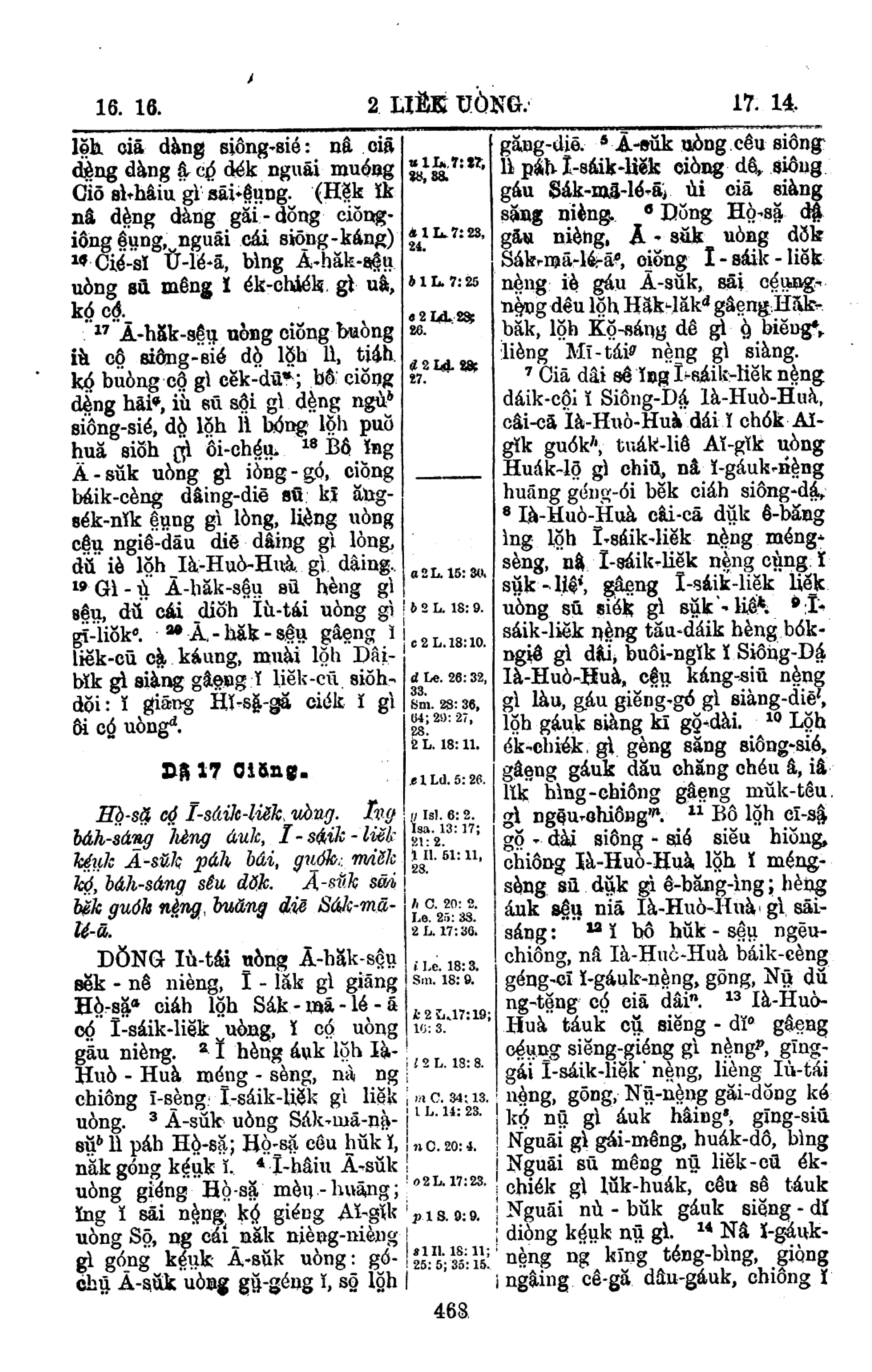 1908年新旧约全书 列王纪下 16 章 16 节到 17 章 14 节