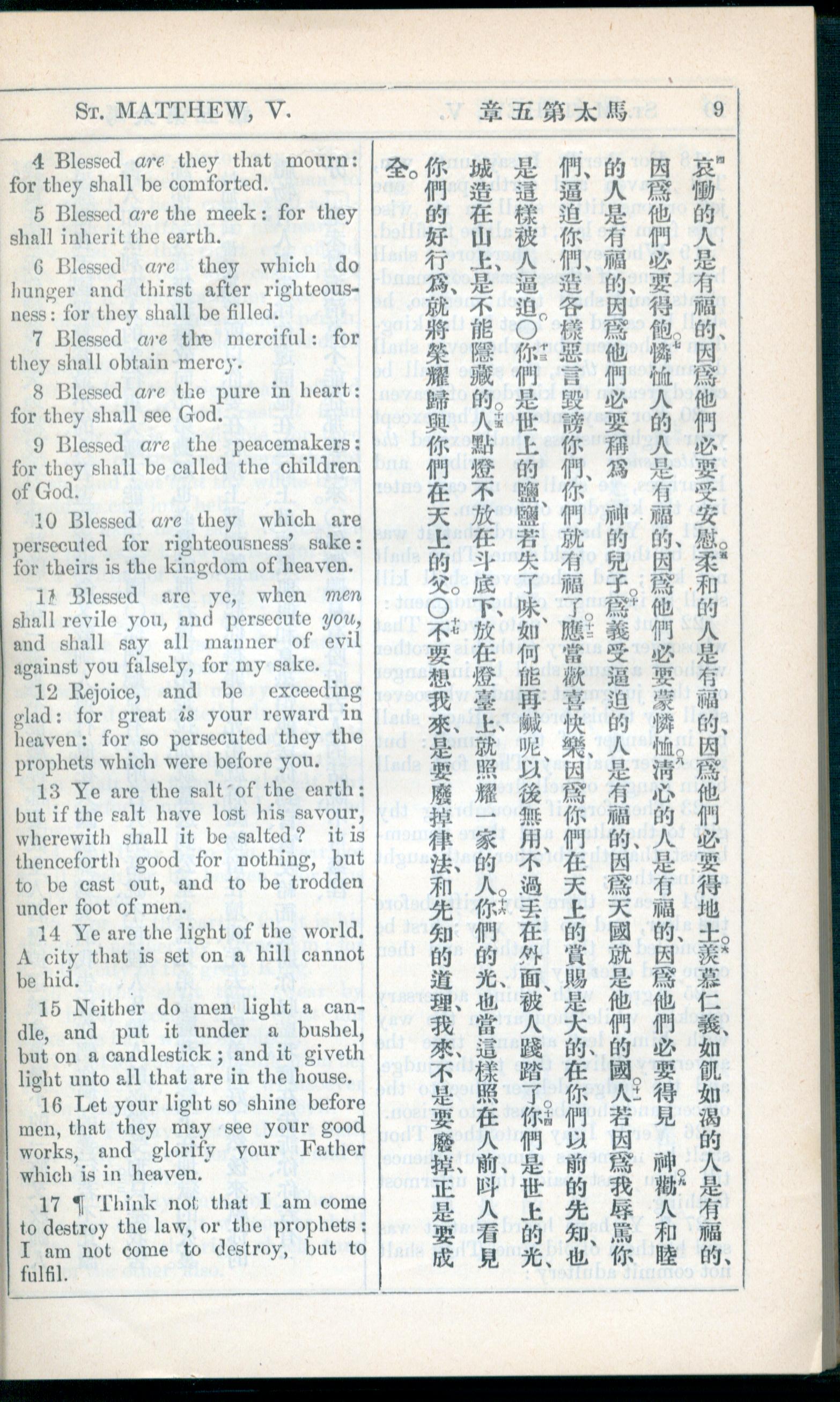 1908年新约全书(中西字) 马太福音 5 章 4 节到 5 章 17 节
