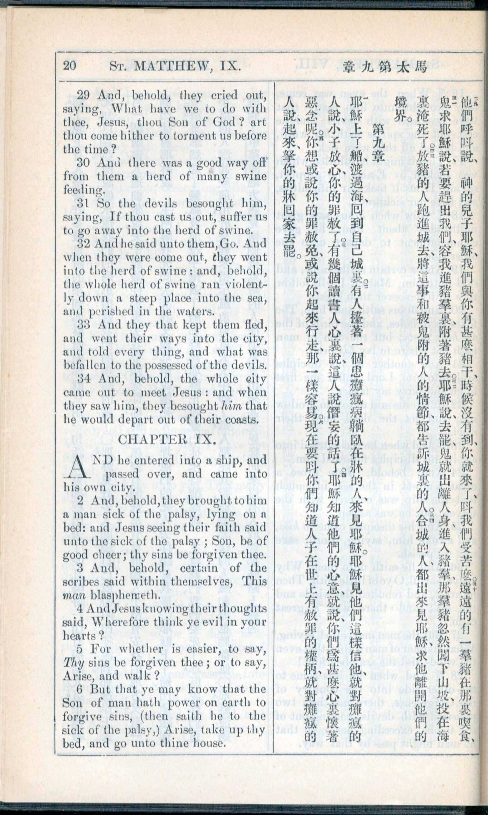 1908年新约全书(中西字) 马太福音 8 章 29 节到 9 章 6 节