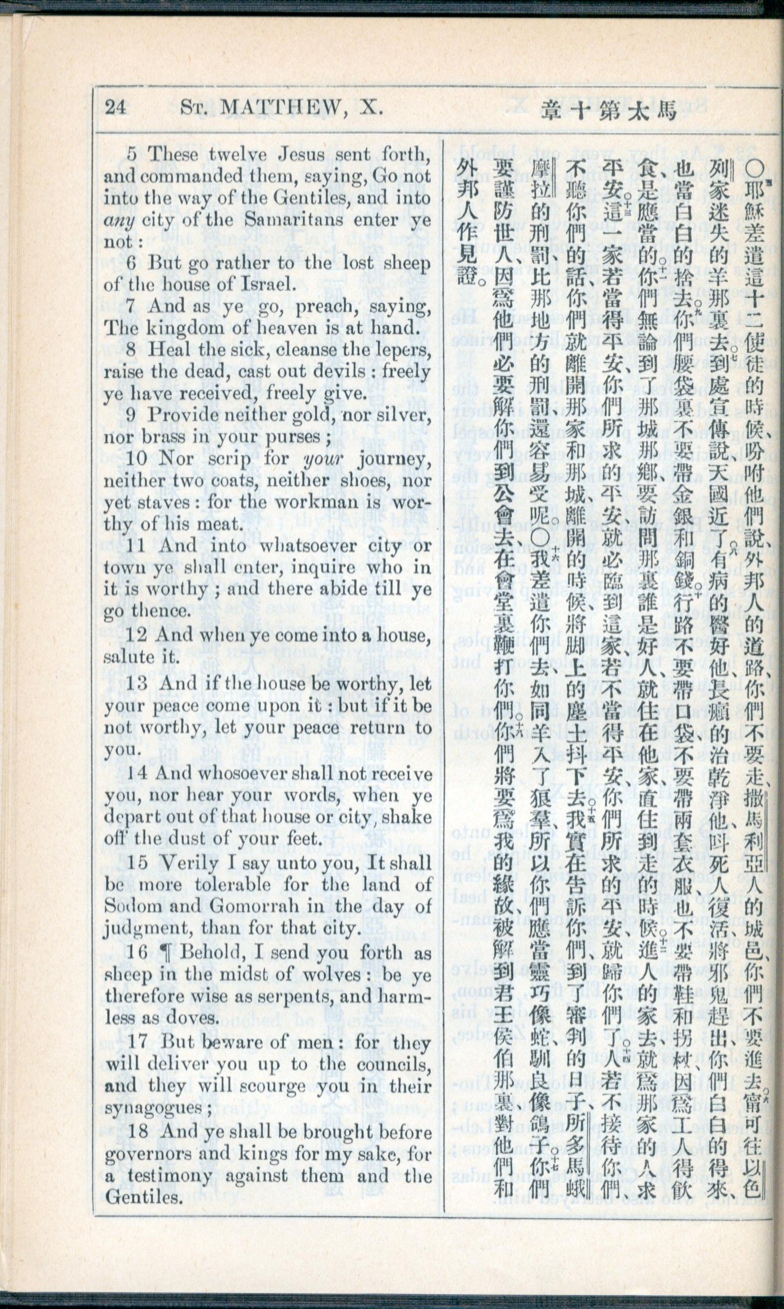 1908年新约全书(中西字) 马太福音 10 章 5 节到 10 章 18 节