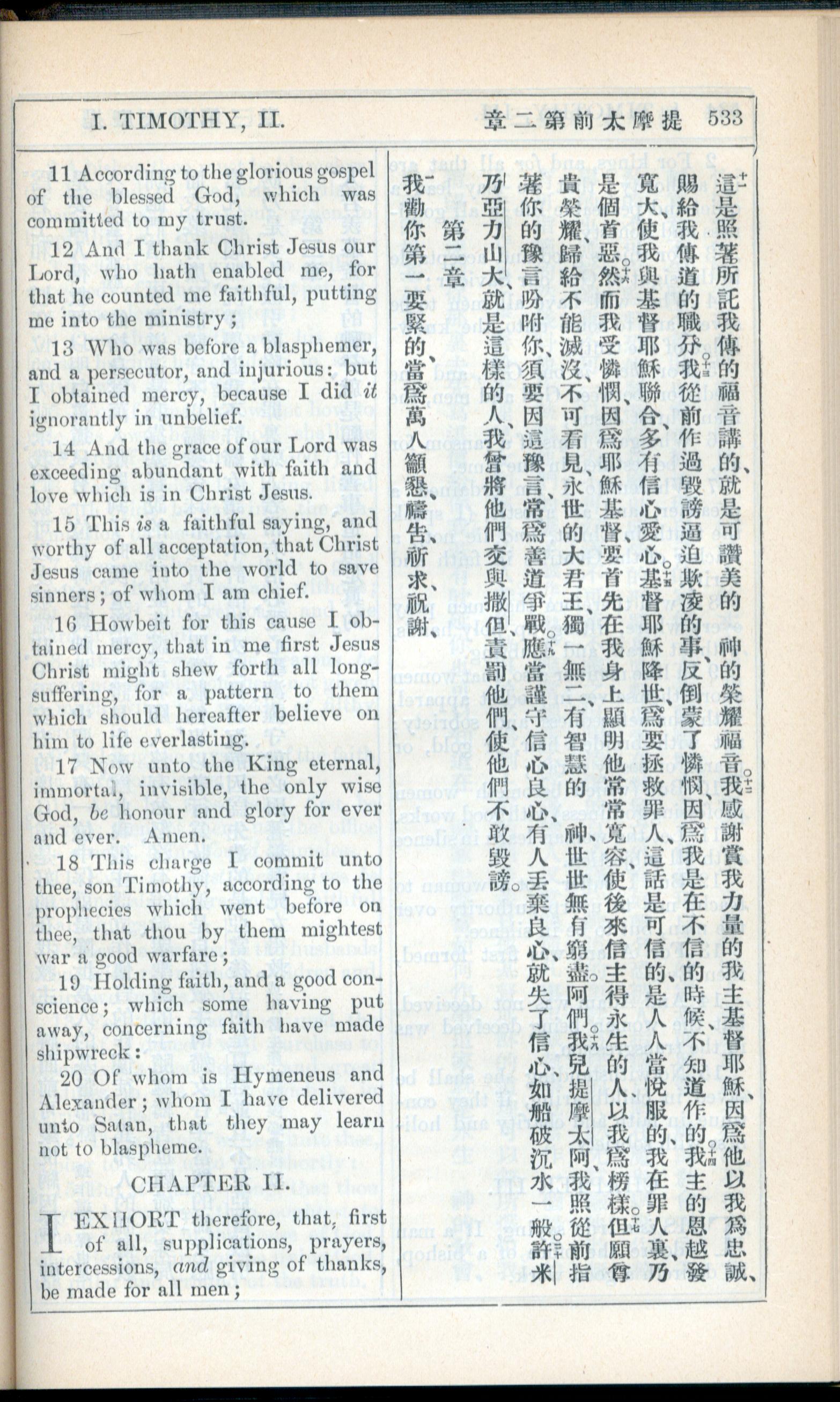 1908年新约全书(中西字) 提摩太前书 1 章 11 节到 2 章 1 节