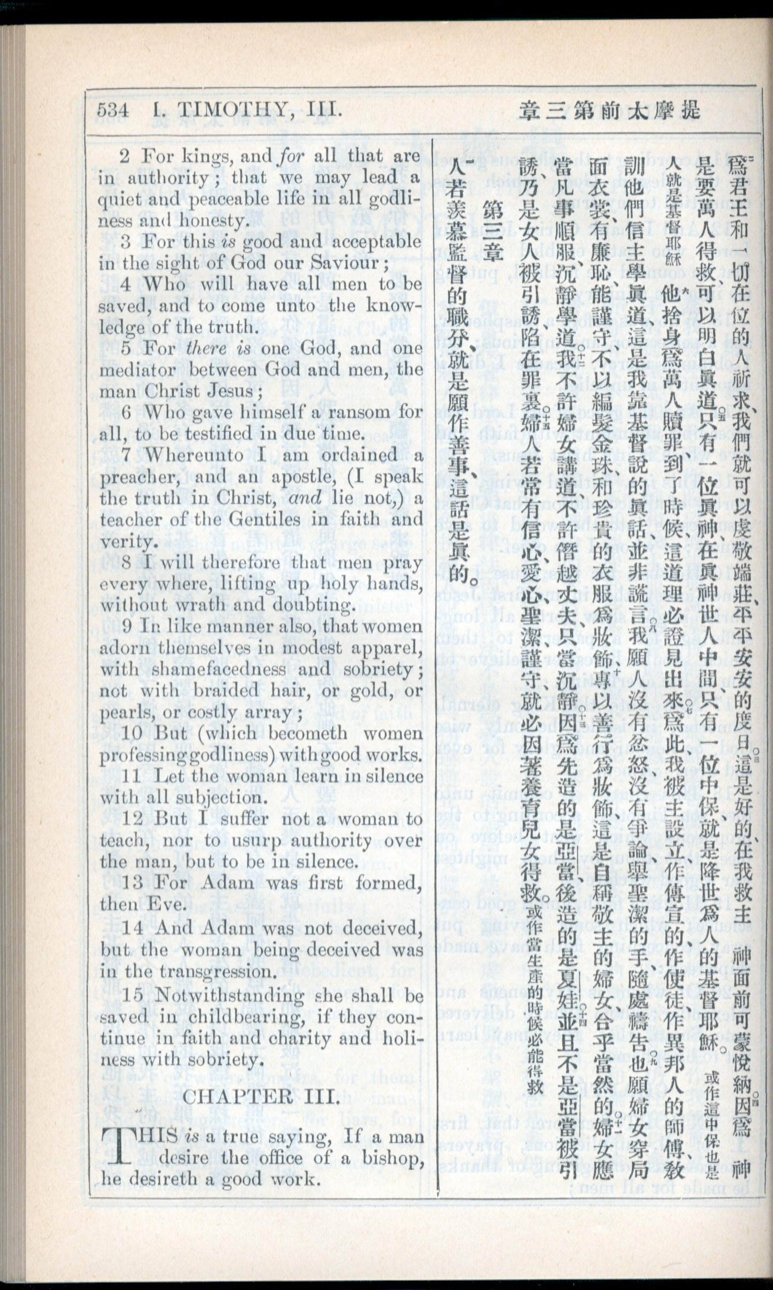 1908年新约全书(中西字) 提摩太前书 2 章 2 节到 3 章 1 节