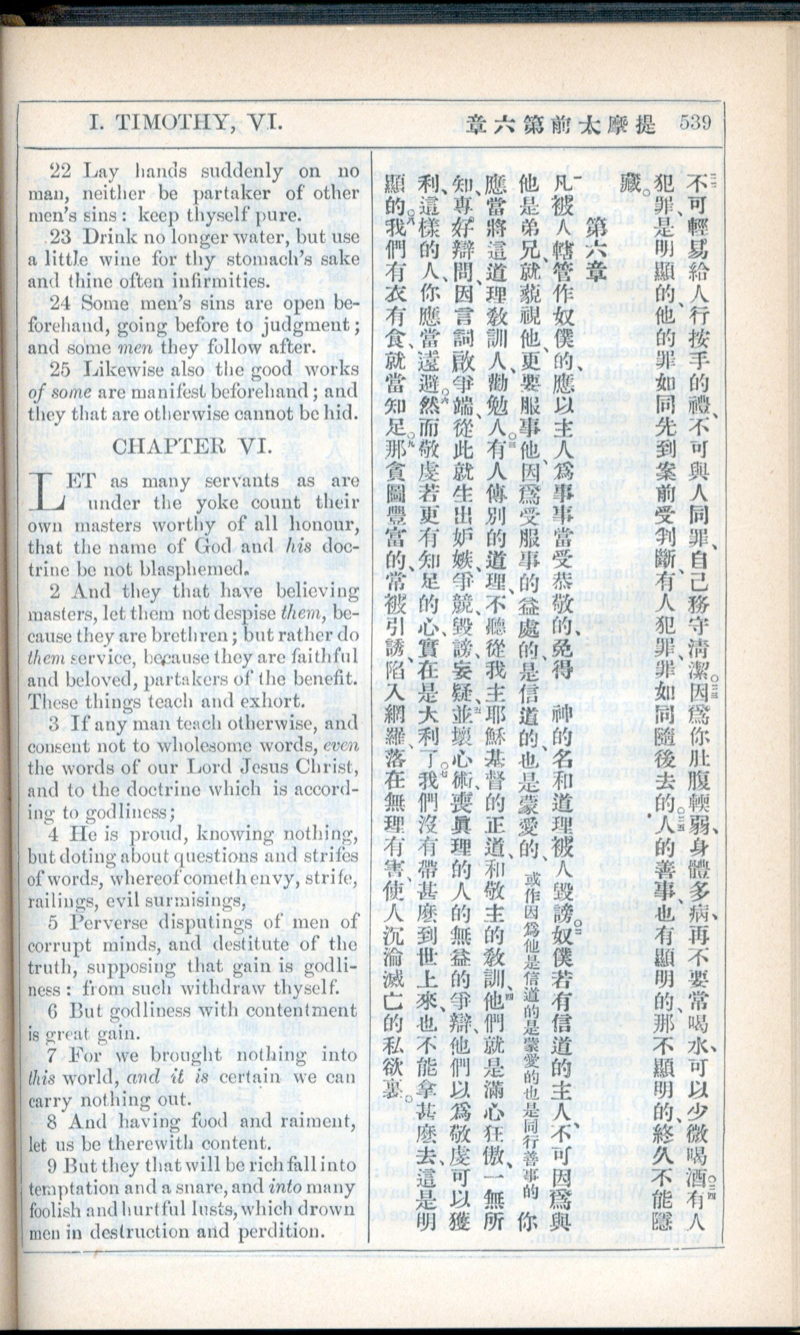 1908年新约全书(中西字) 提摩太前书 5 章 22 节到 6 章 9 节