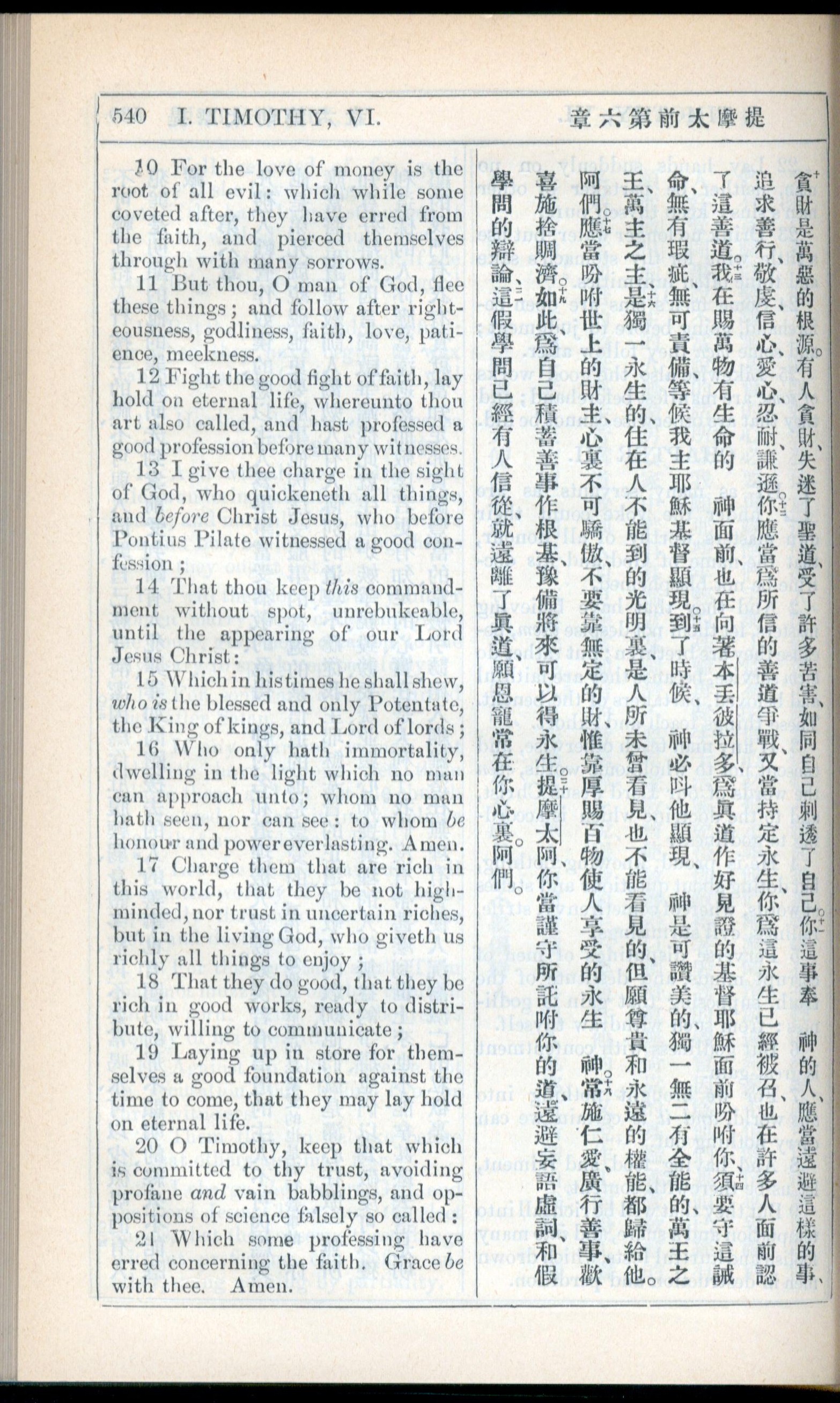1908年新约全书(中西字) 提摩太前书 6 章 10 节到 6 章 21 节
