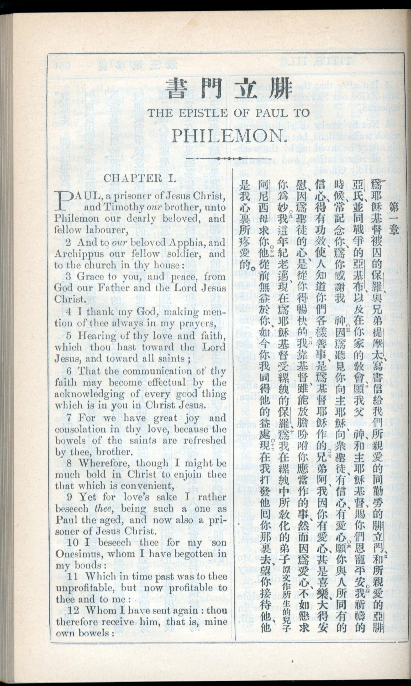 1908年新约全书(中西字) 腓利门书 1 章 1 节到 1 章 12 节