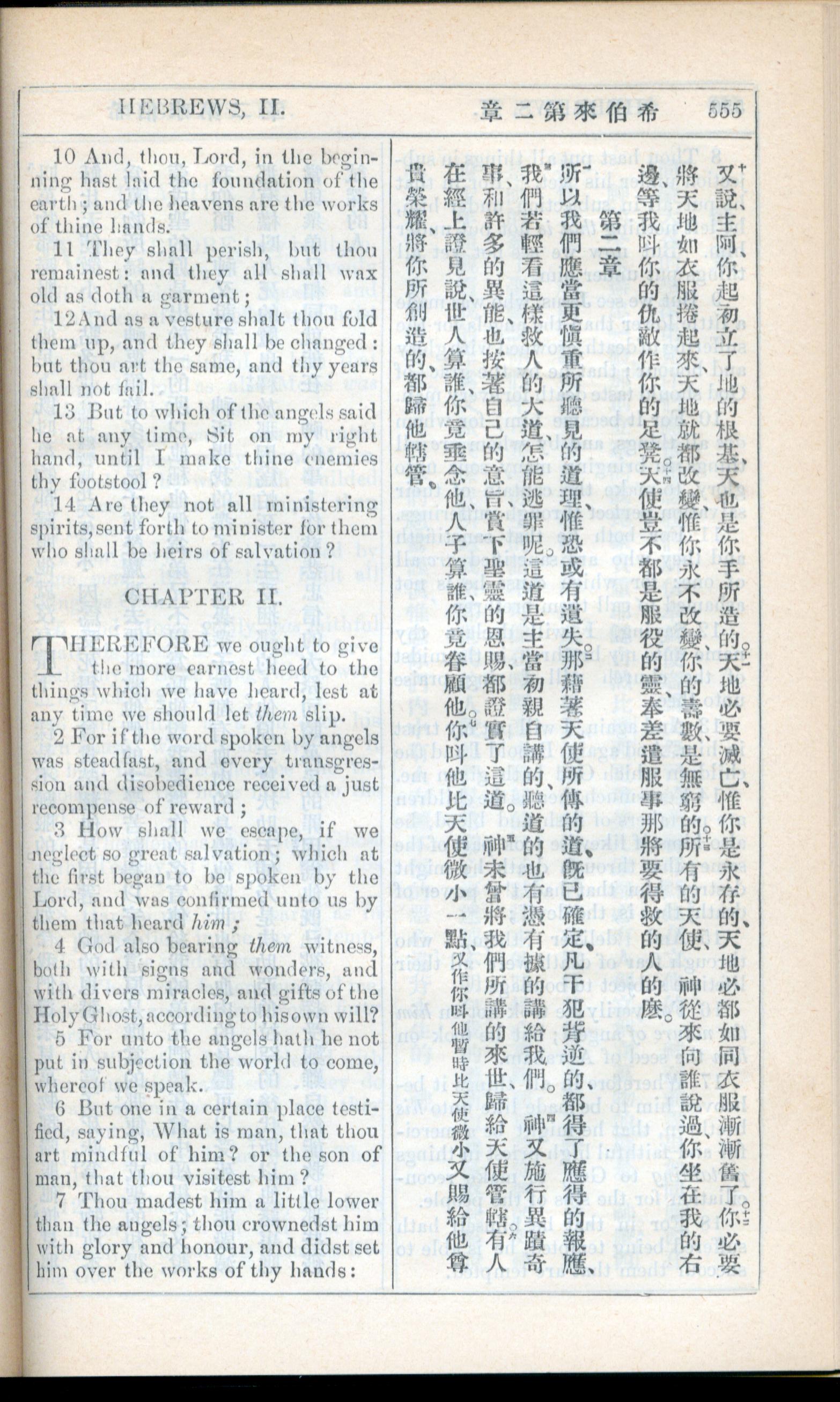 1908年新约全书(中西字) 希伯来书 1 章 10 节到 2 章 7 节